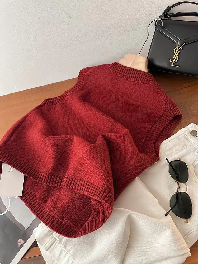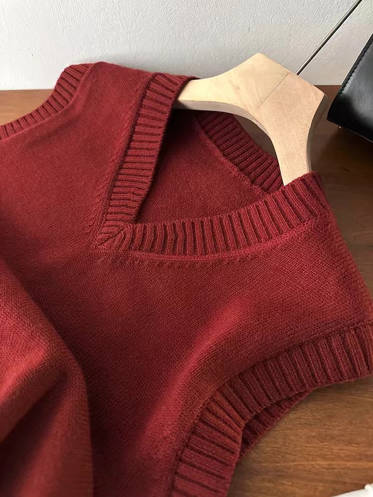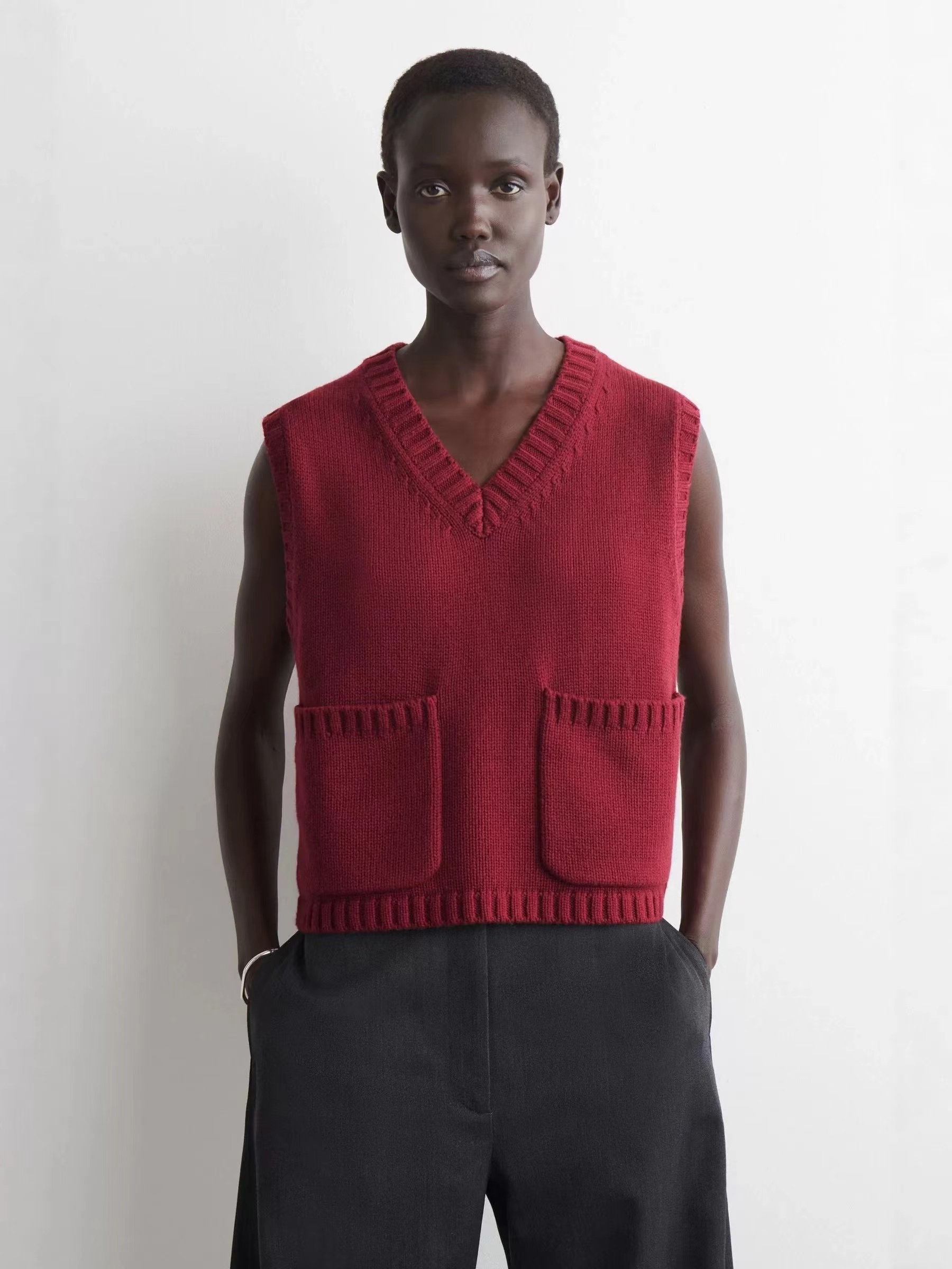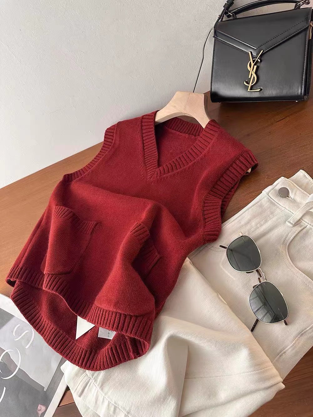 马甲2025冬季新款时尚V领大口袋红色无袖羊毛马甲背心坎肩女,叠穿神器~北欧小众酒红色无袖针织毛衣外搭背心马甲女,2025秋冬叠穿v领宽松坎肩上衣,尤选混纺针织纱线,触感舒适亲肤,设计感宽松箱型廓形剪裁,罗纹边V领修饰脖颈线条,也便于内搭各种打底,身前立体工装风贴袋,简单叠穿T恤打底衫,提升整体层次感~~~