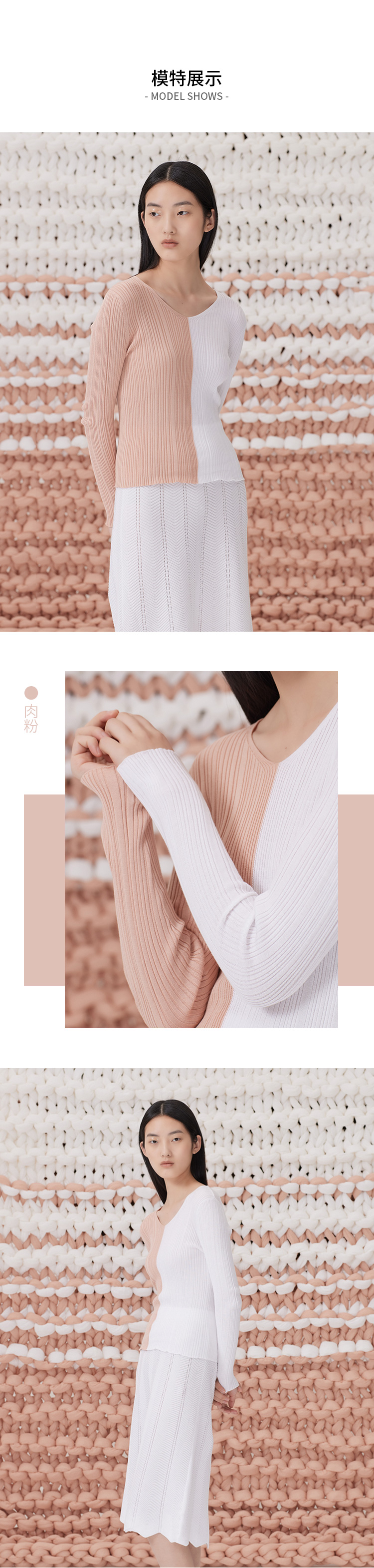 春夏 撞色针织V领长袖女套衫 SJS93W071N