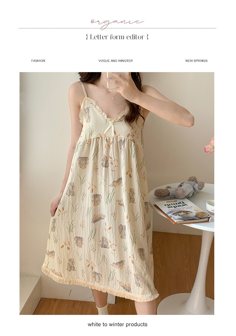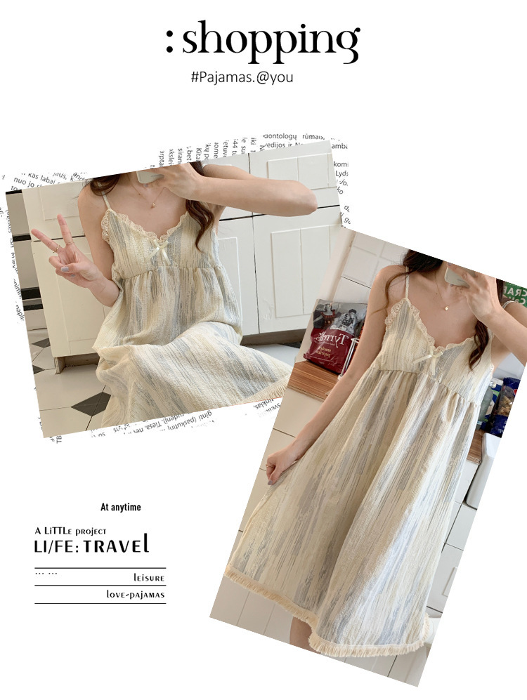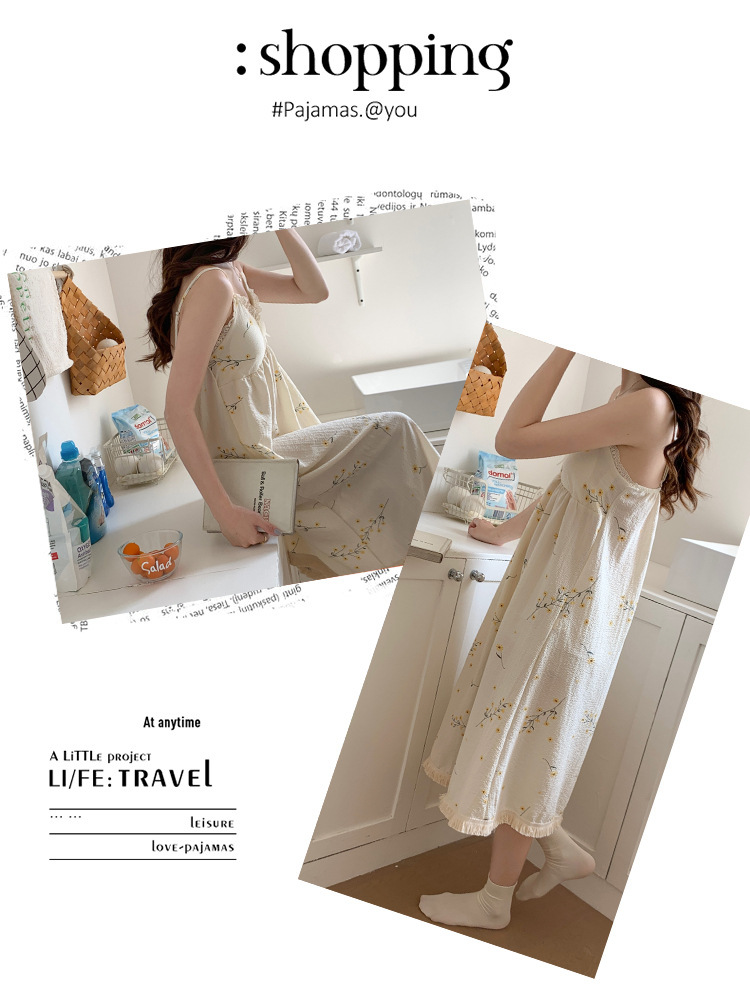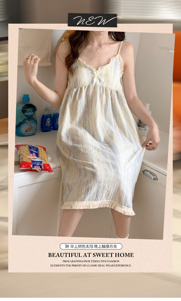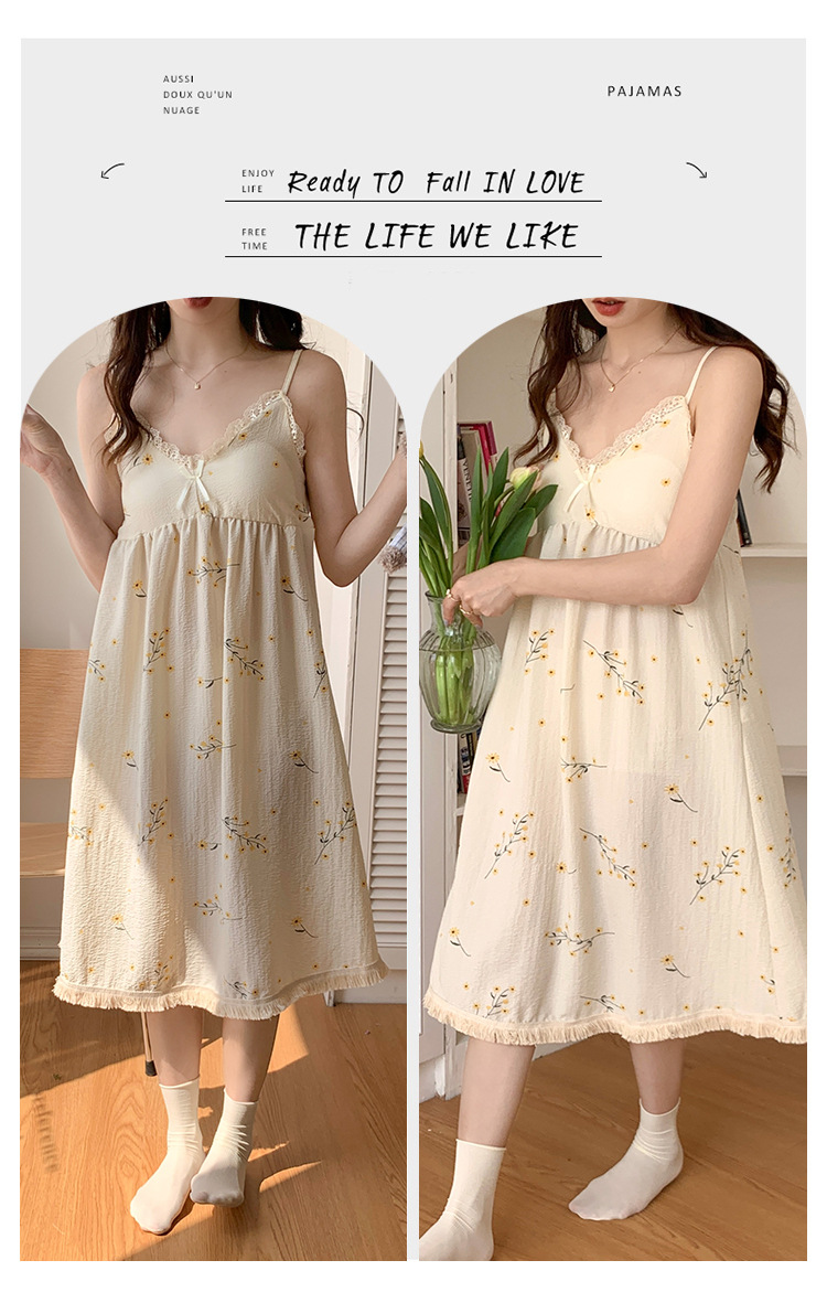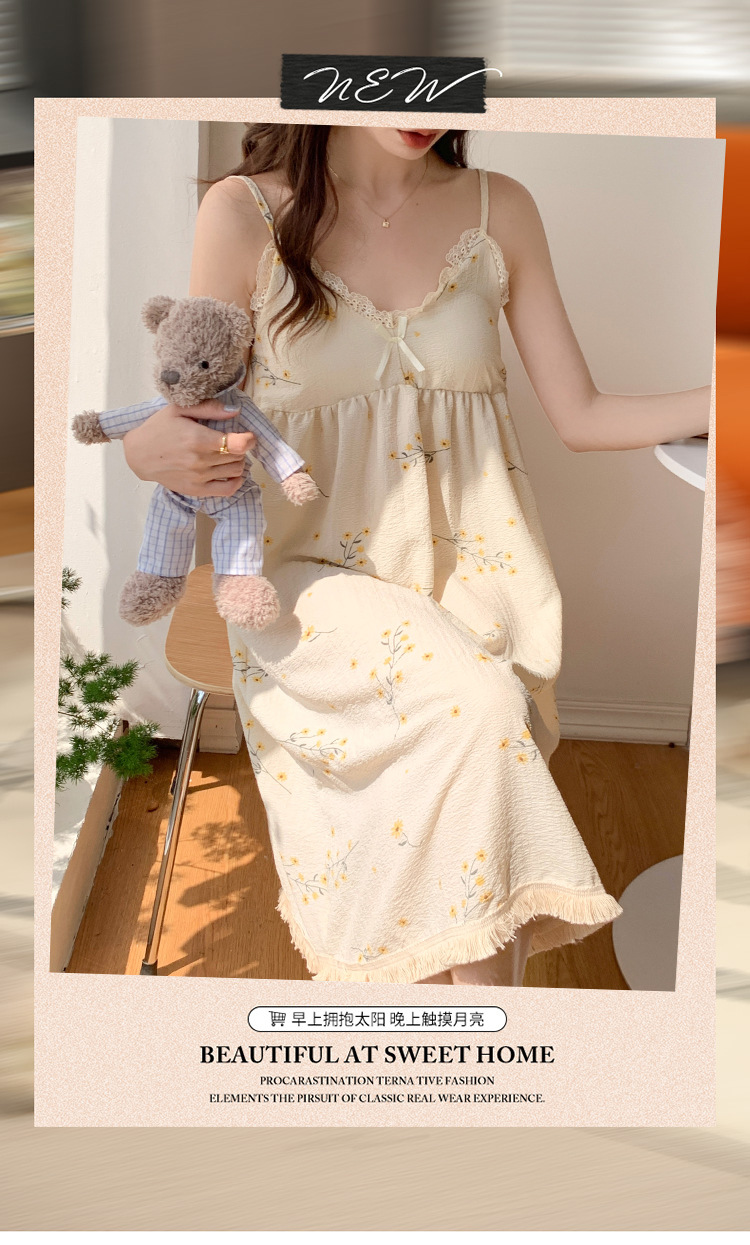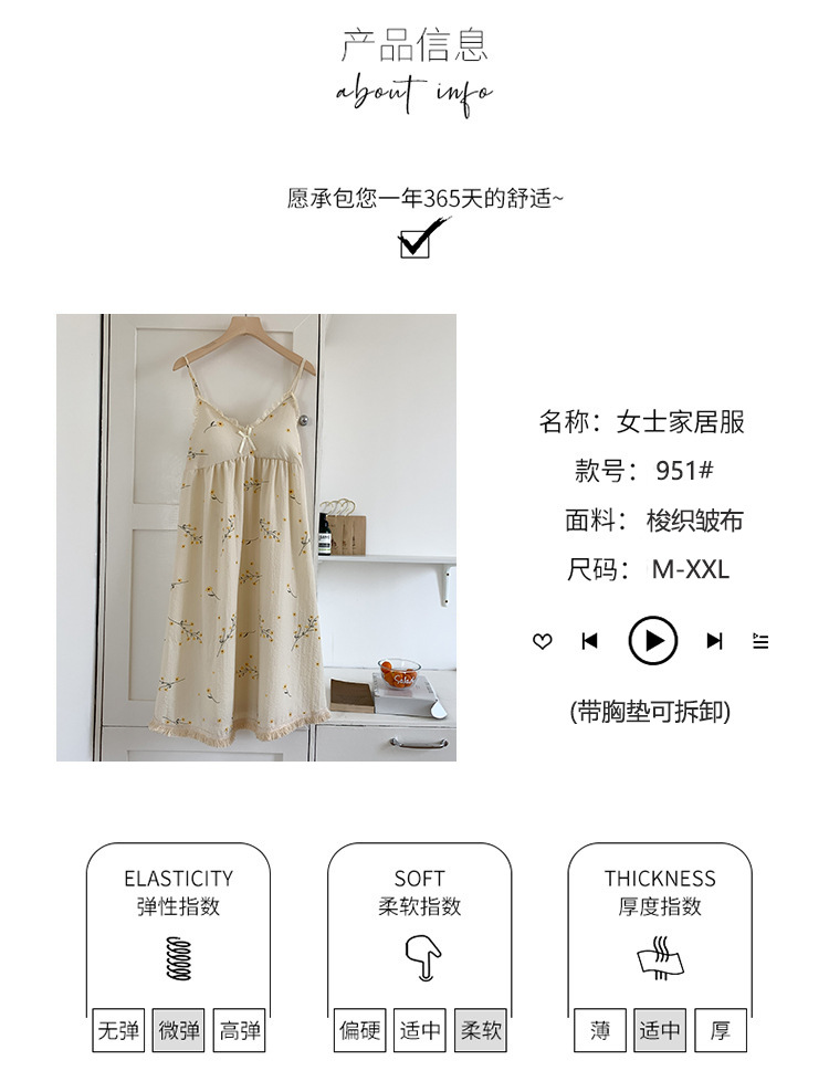 【清新甜美❗️睡衣夏季纯欲风泡泡棉】舒适柔软,弹力好,清凉透气,吊带睡裙女甜美可爱带胸垫家居服可外穿粉丝专属