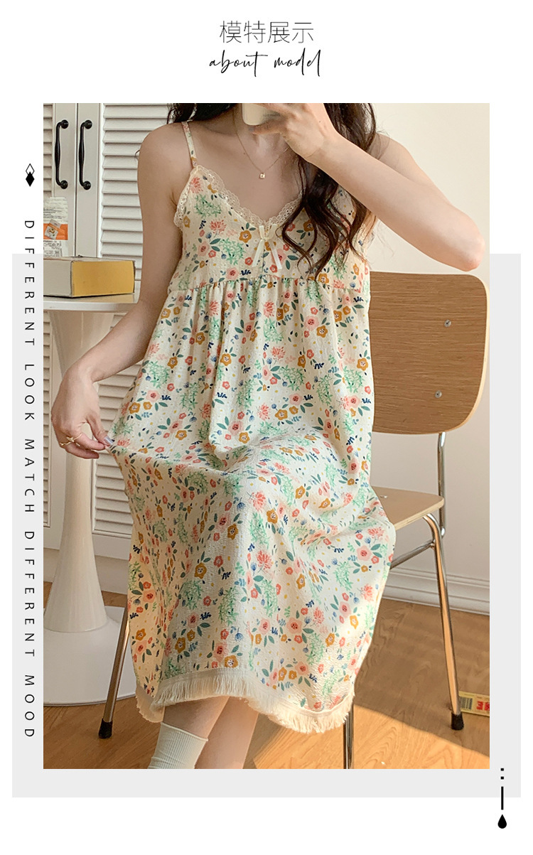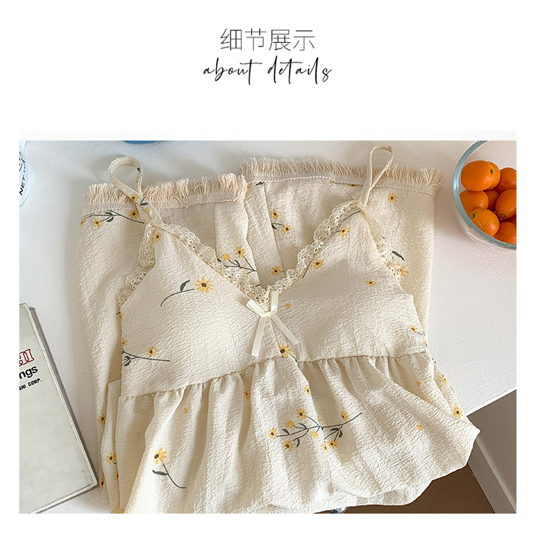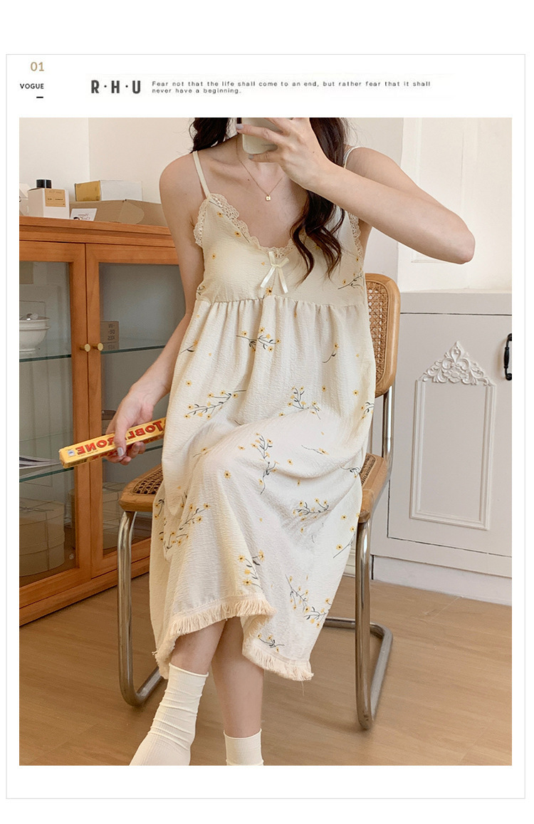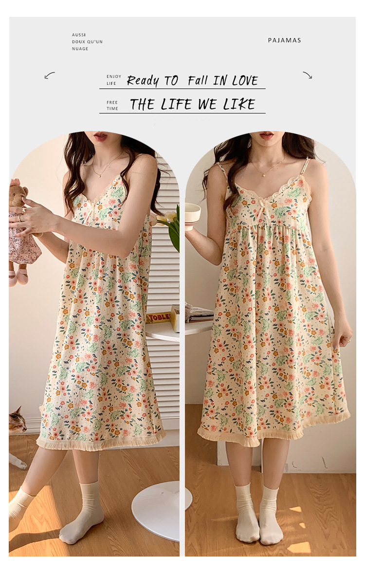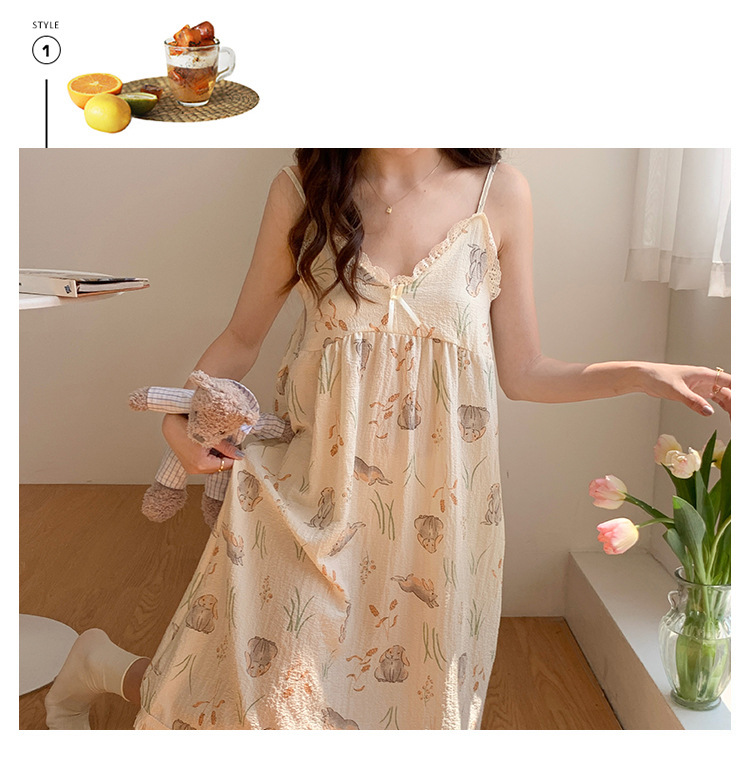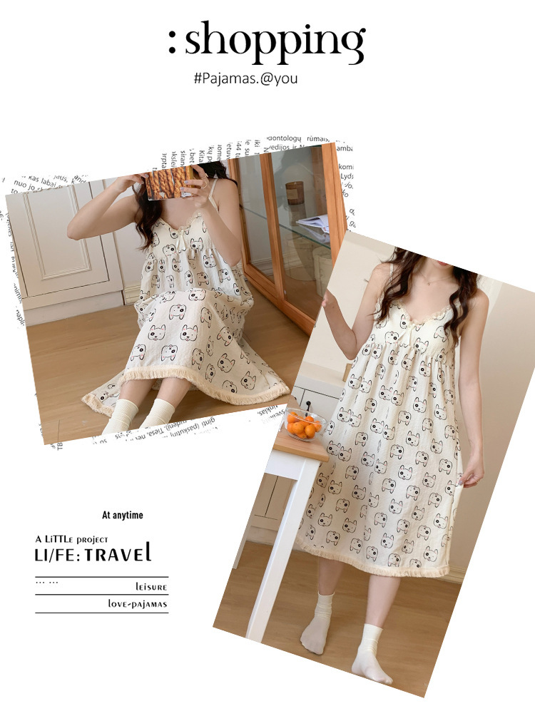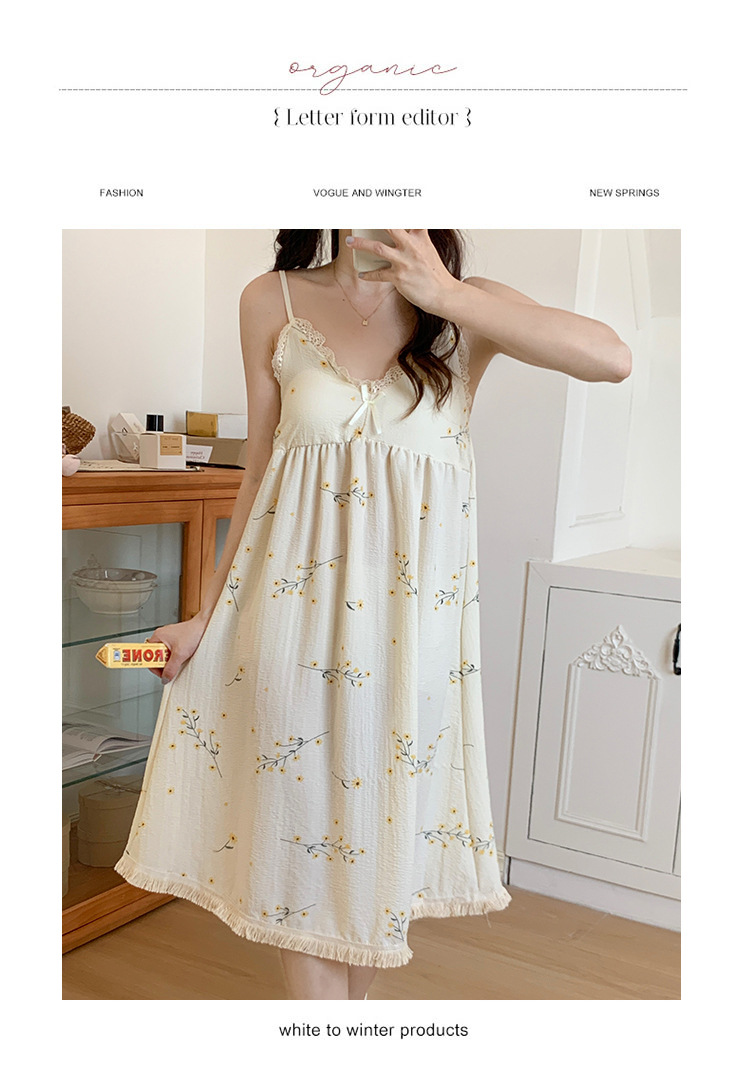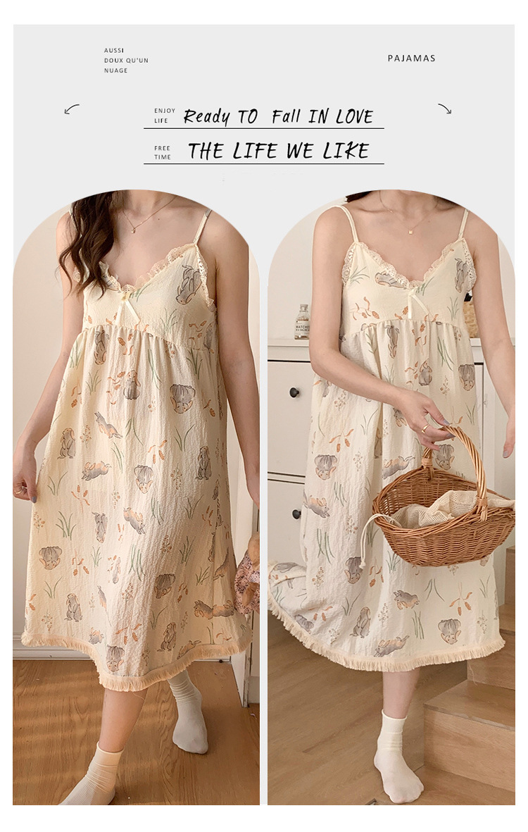 【清新甜美❗️睡衣夏季纯欲风泡泡棉】舒适柔软,弹力好,清凉透气,吊带睡裙女甜美可爱带胸垫家居服可外穿粉丝专属
