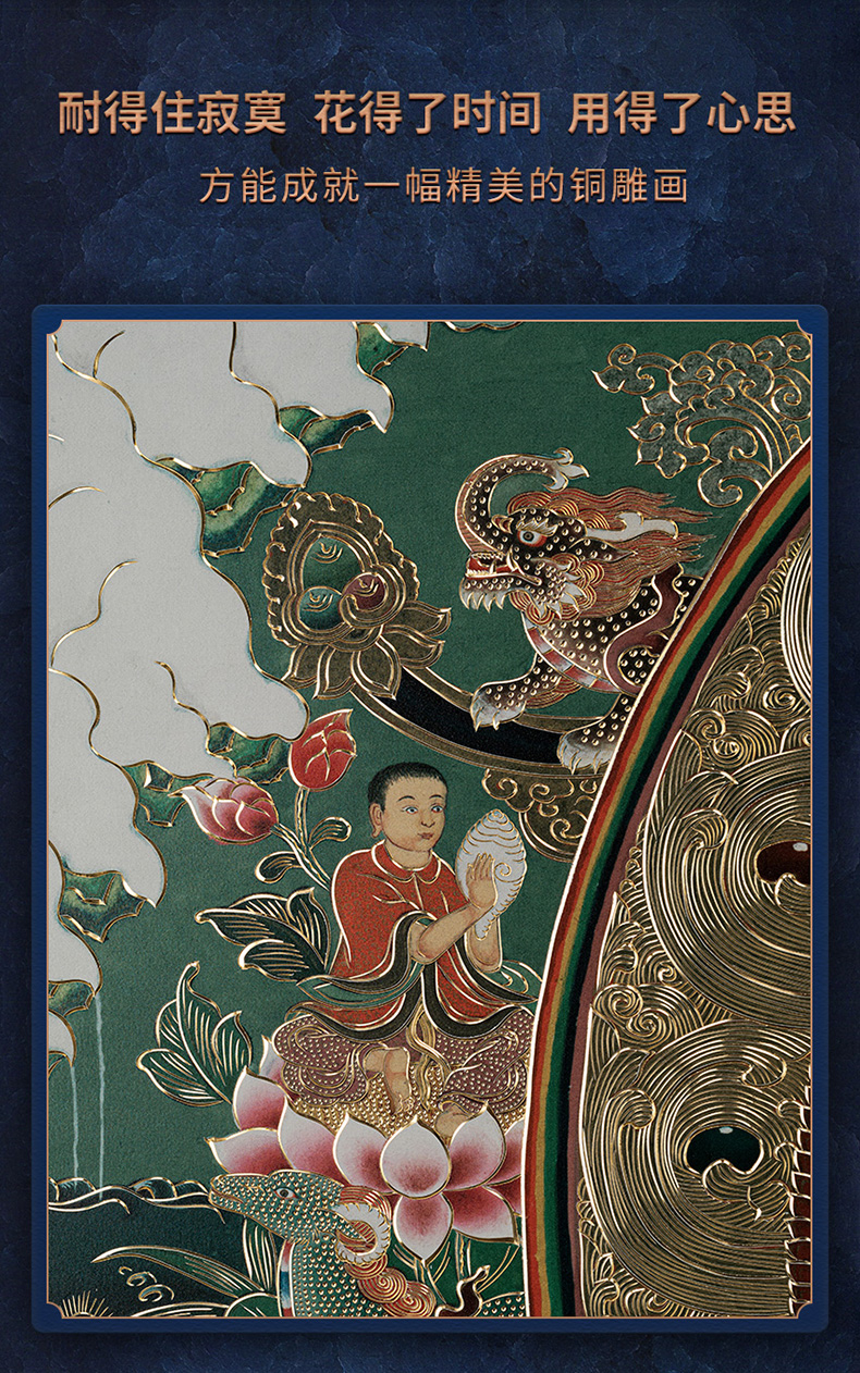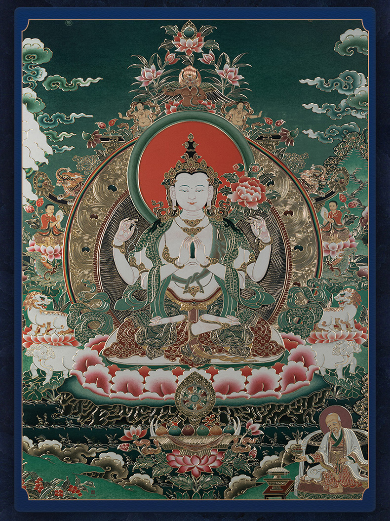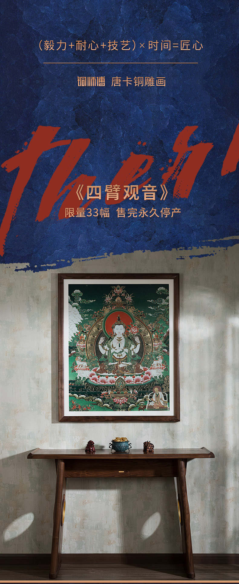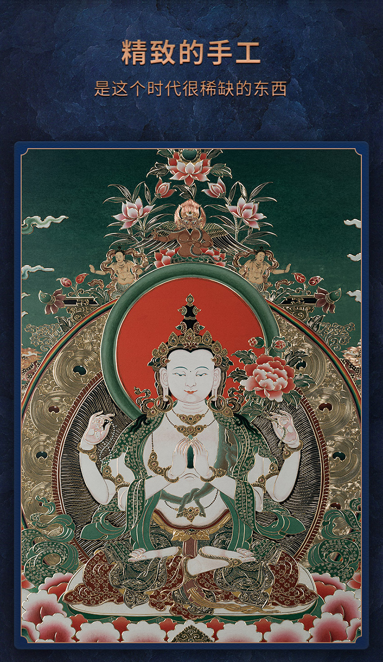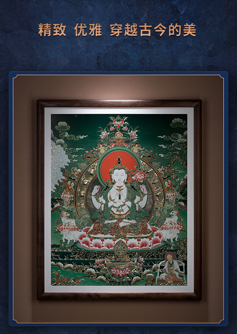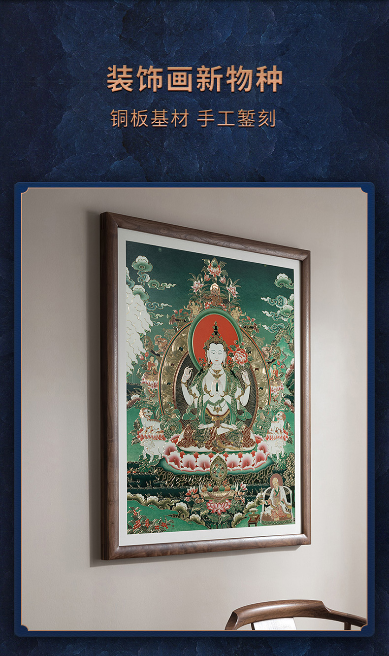 铜师傅 手工錾刻 唐卡铜雕画《四臂观音》