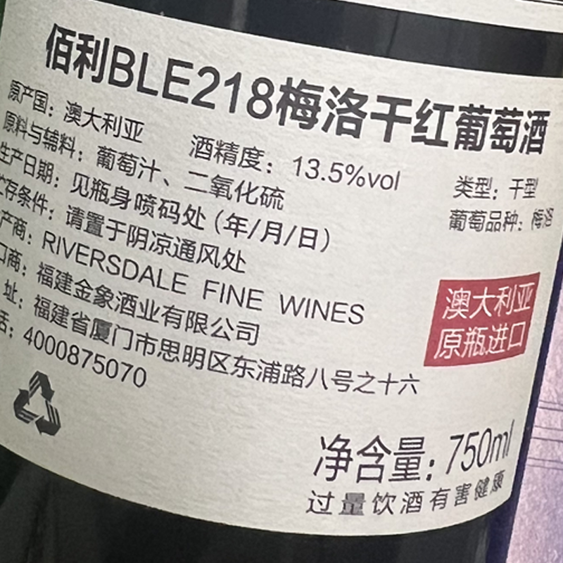 【清仓特价】澳大利亚佰利梅洛干红葡萄酒