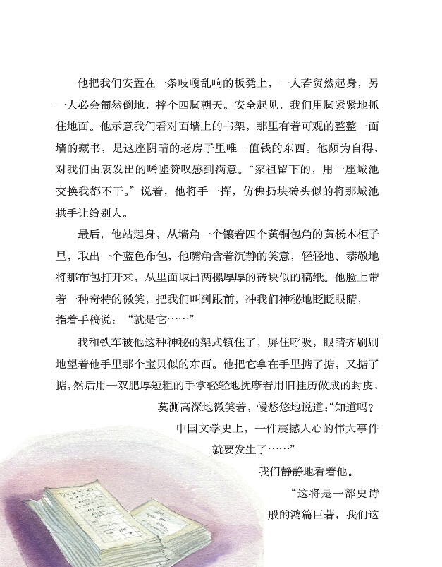 每当看到大师坐在窗前,望着窗外辽远的天空,想念着那个并不存在的粉红姑娘时;每当他捧着洒有法国香水的来信,隔上一会儿就温习一遍幸福的滋味时;每当上午九点的钟声敲响,他将两手放在心口上,闭上眼睛暗暗祈祷时,我们打心眼里为他感到高兴。