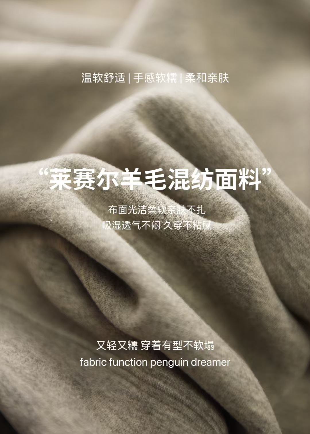 3%羊毛+8%莱赛尔+42%晴纶+38%再生纤维(蛋白丝)+9%氨纶