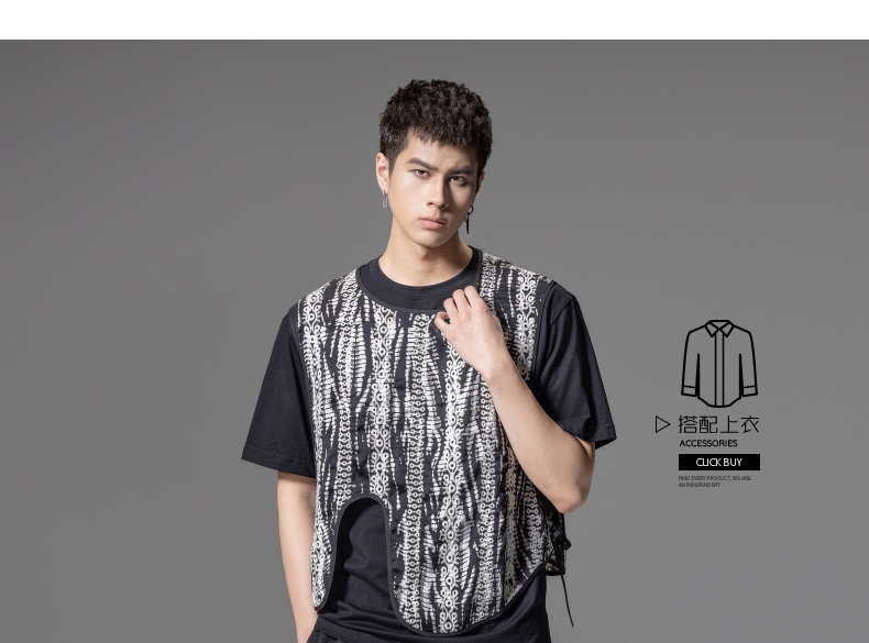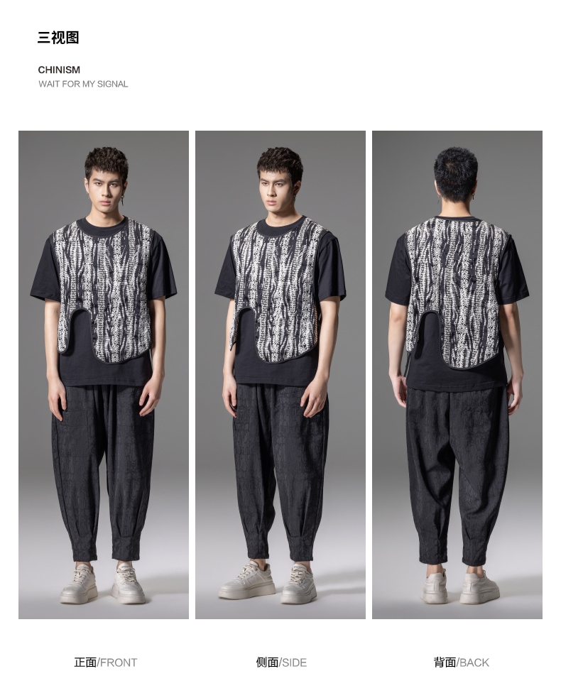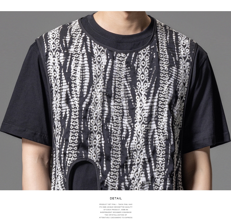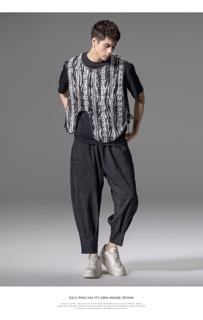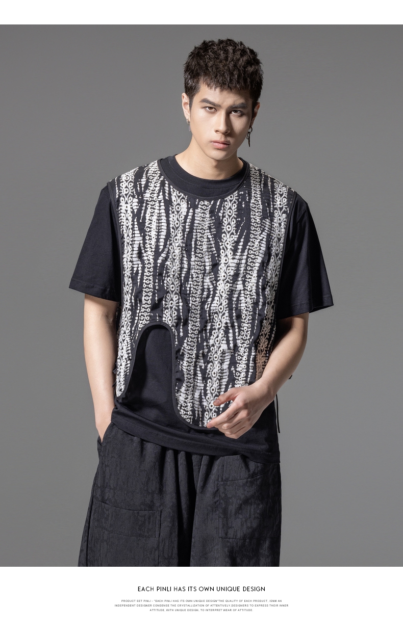 PINLI品立夏季新款新中式刺绣镂空马甲不规则下摆休闲男背心B242107122