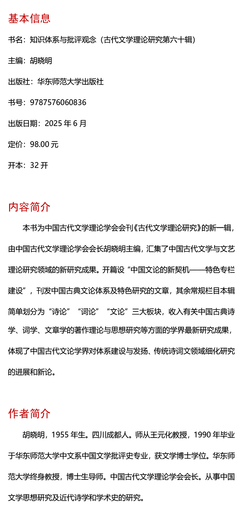 知识体系与批评观念 古代文学理论研究第六十辑 胡晓明