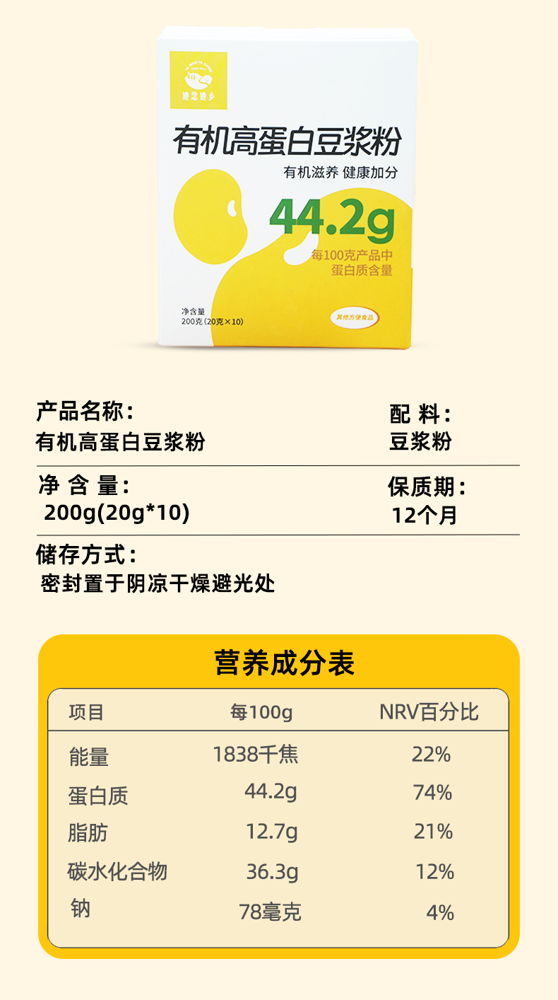 【她念她乡】有机高蛋白豆浆粉200g/盒