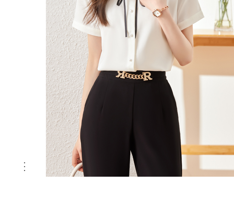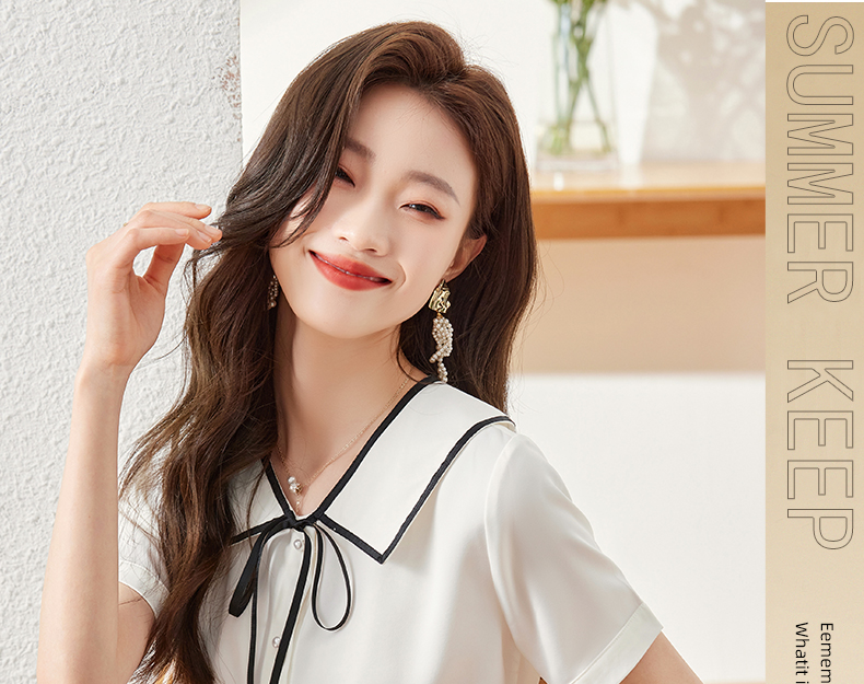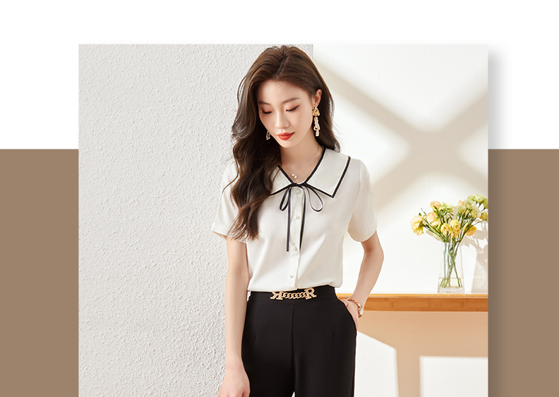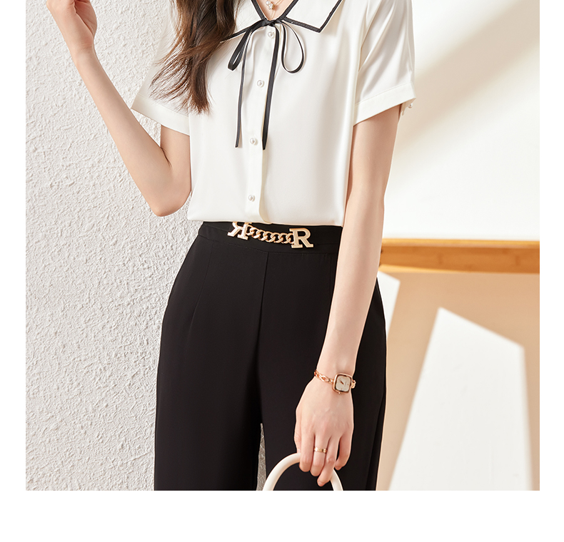 夏季新款系带领衬衫职场百搭时尚显瘦衬衣上衣女