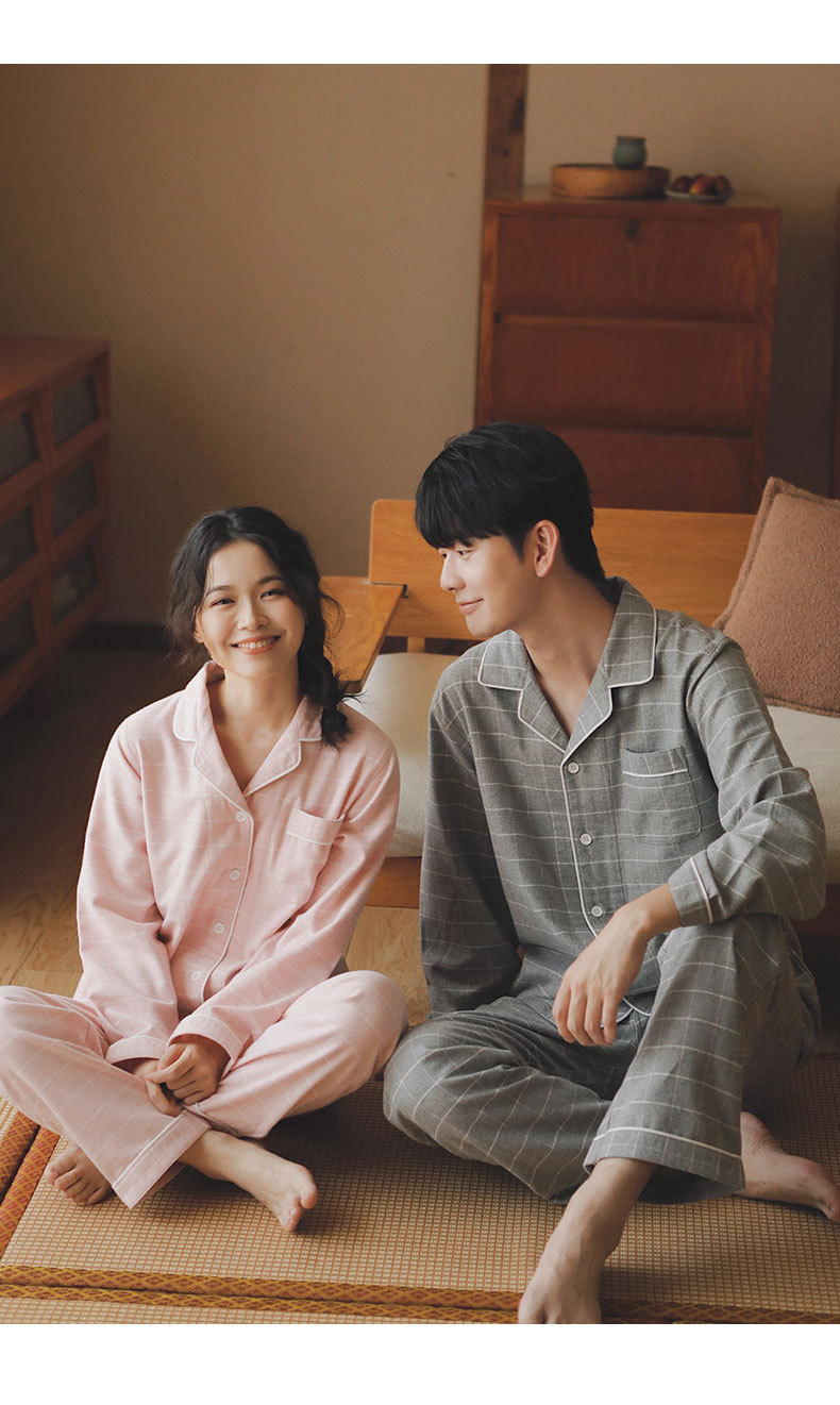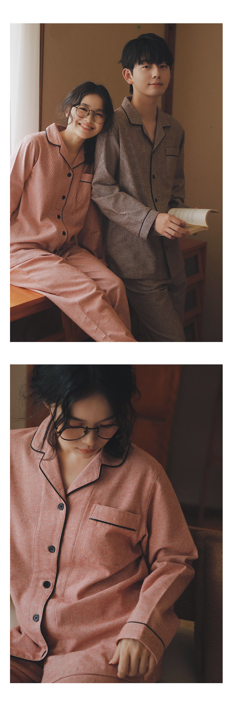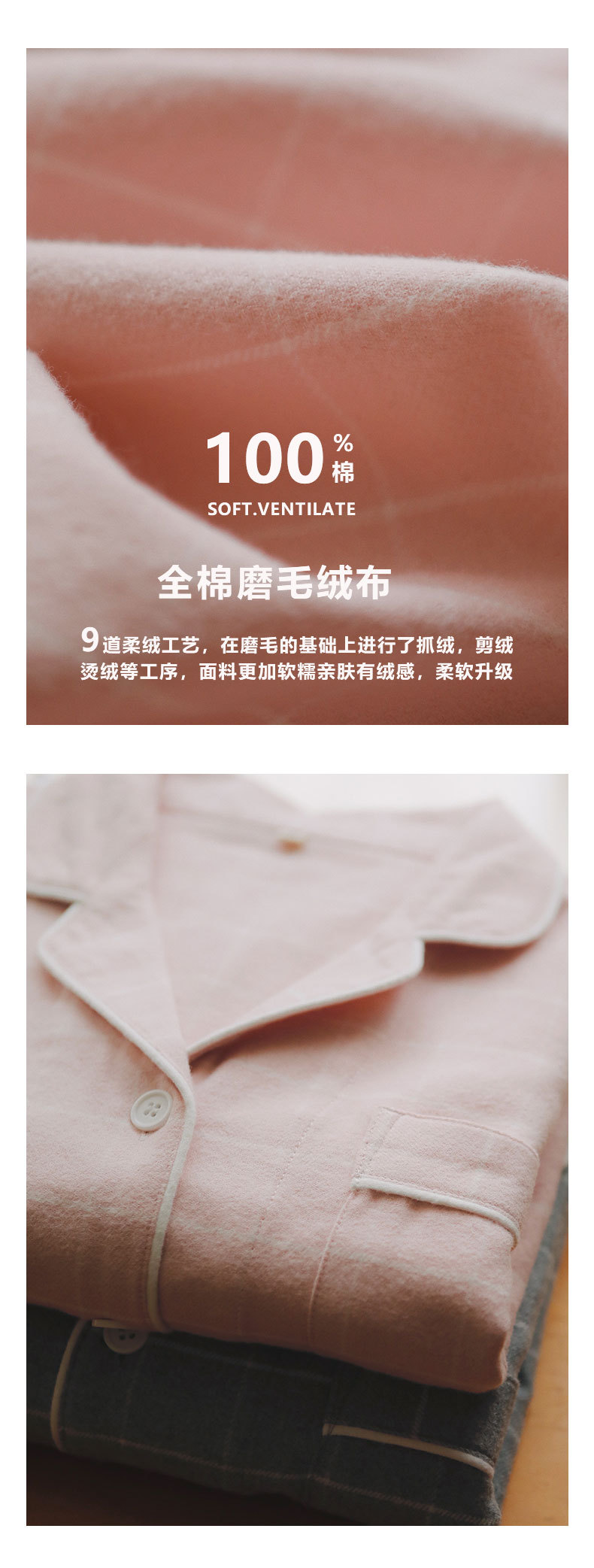 【全棉磨毛】断码特价!无印情侣睡衣女春秋季纯棉磨毛绒布秋冬加厚全棉长袖家居服