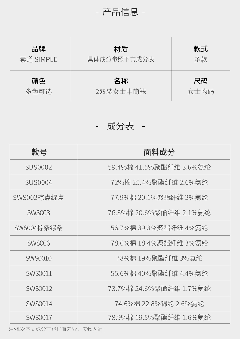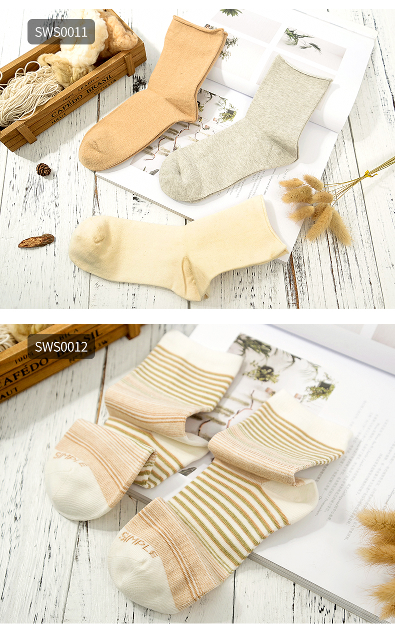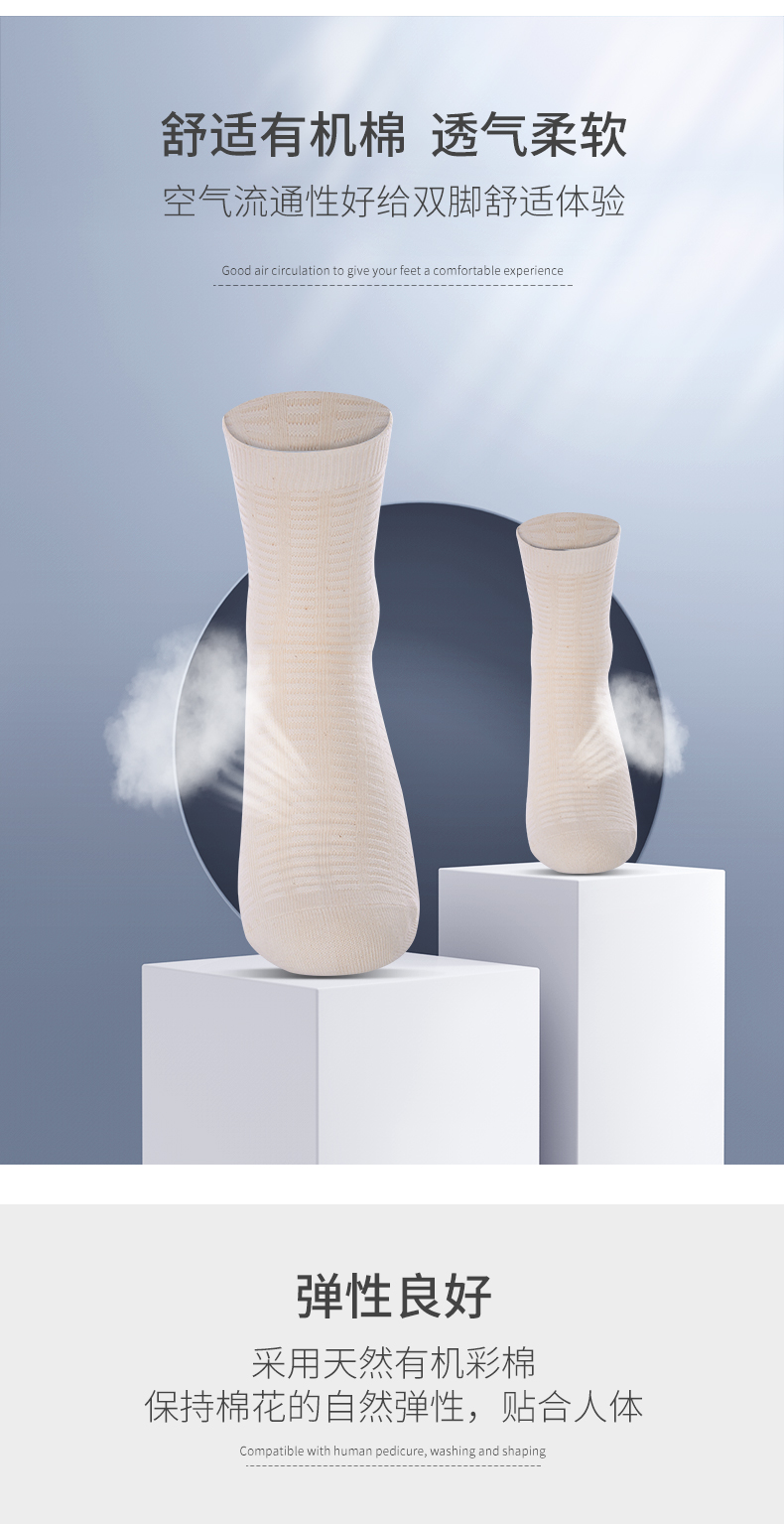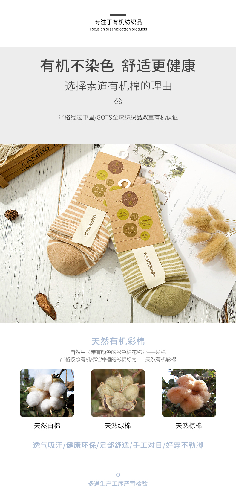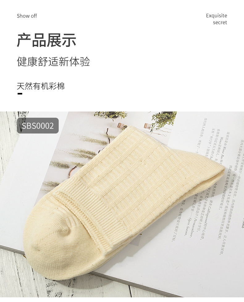 素道2双装运动女袜 彩棉有机种植秋冬女袜 休闲透气中筒棉袜