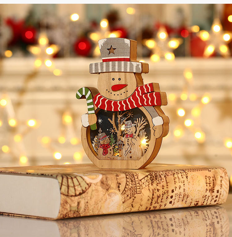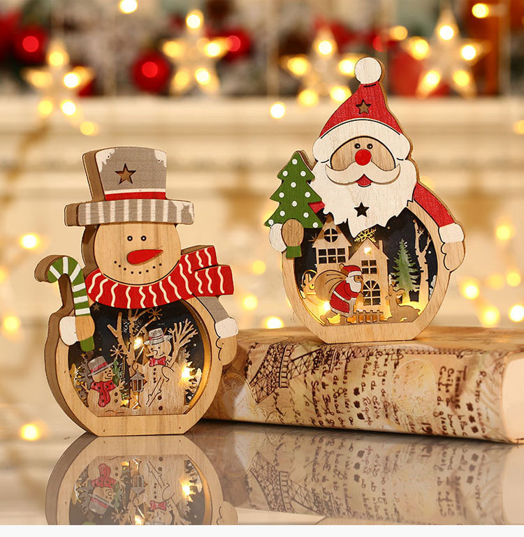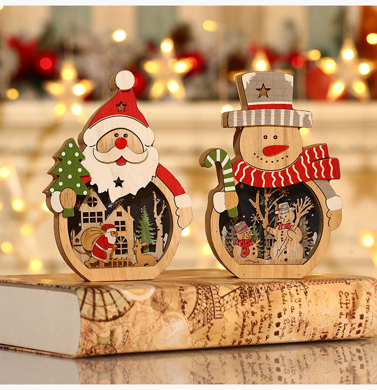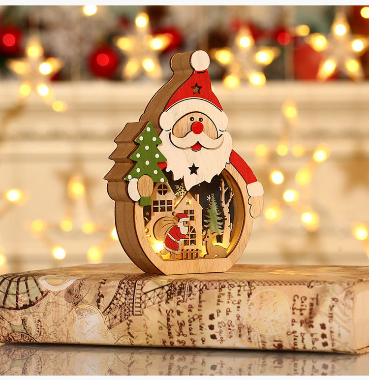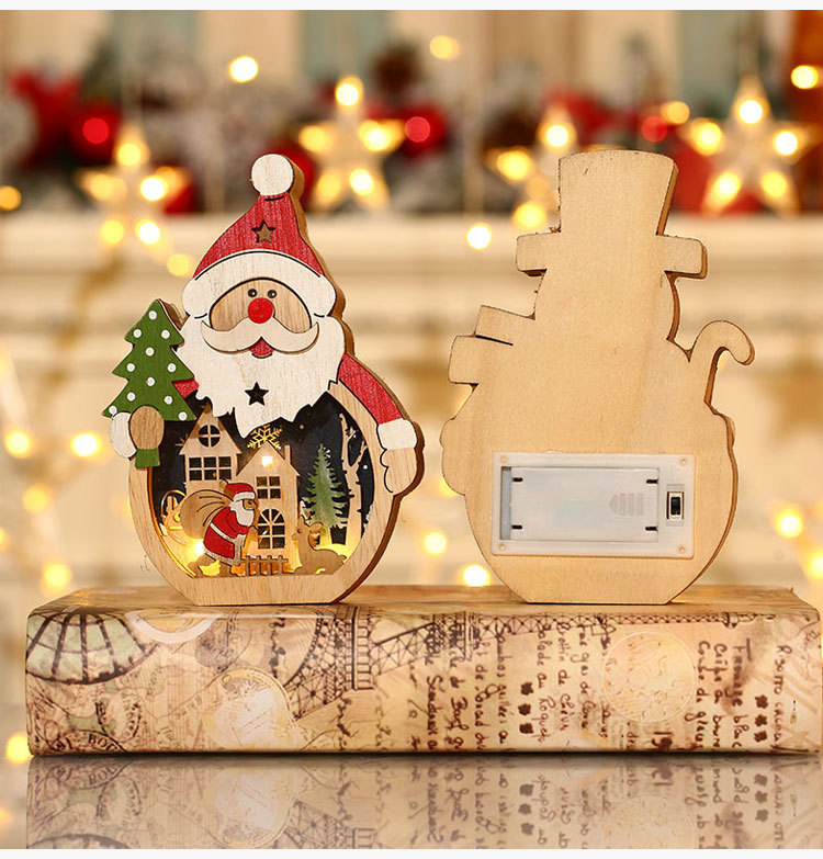 【圣诞礼物】新款圣诞节装饰品 LED发光圣诞老人木质摆件桌面橱窗布置