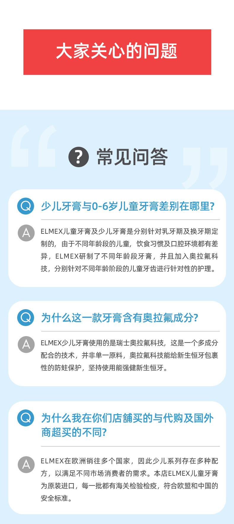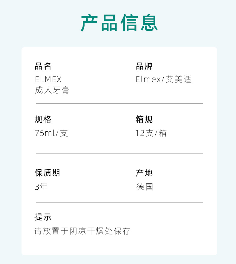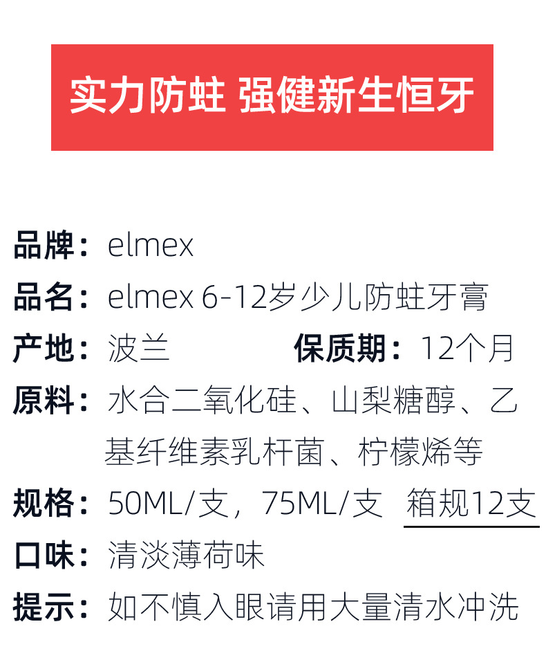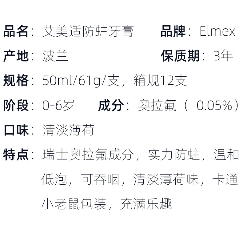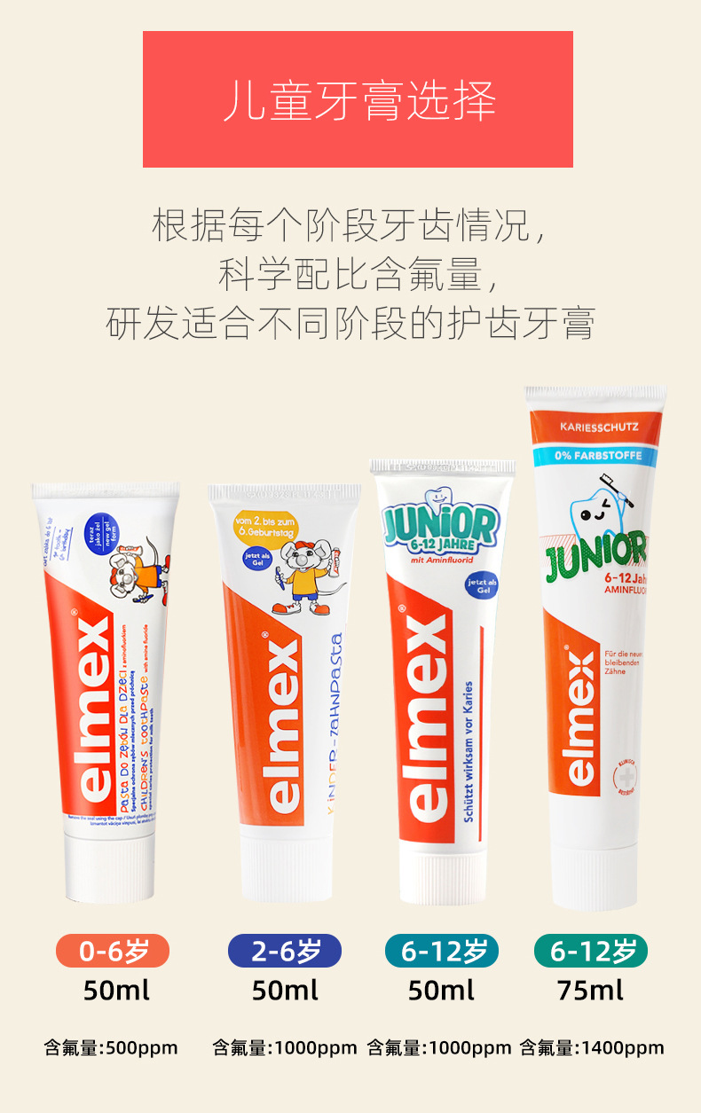【一般贸易】德国进口Elmex宝宝牙膏艾美适儿童防龋齿含氟牙膏薄荷0-2-6-12岁