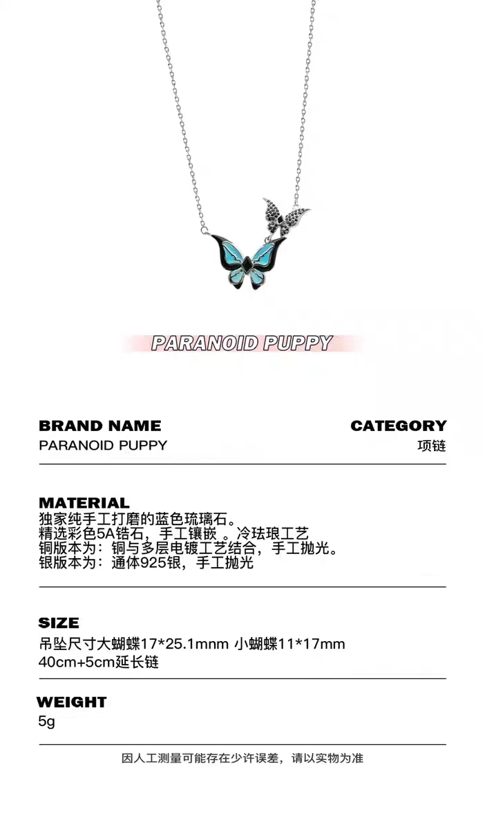 【宫里项链】琉璃蝴蝶925纯银项链