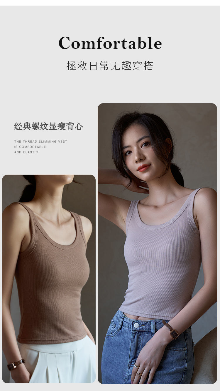 【买1送1!超美纯欲风吊带】维多利亚同款,修身显瘦遮副乳,内搭外穿背心女,多色百搭针织T恤,时尚洋气时髦防走光打底无袖上衣