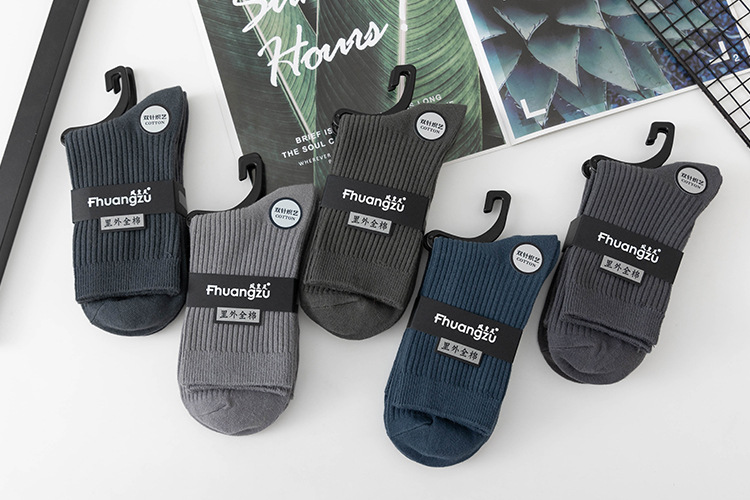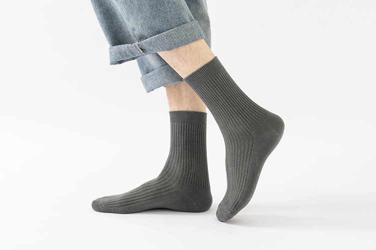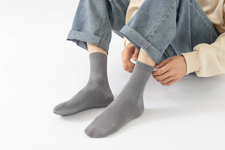 服饰鞋包-双针加厚纯色棉袜时尚透气中筒袜