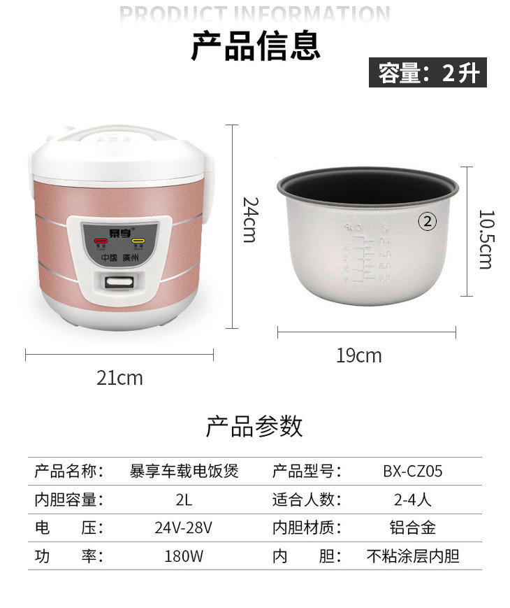 暴享 车载电饭煲 2L容量24V/180W