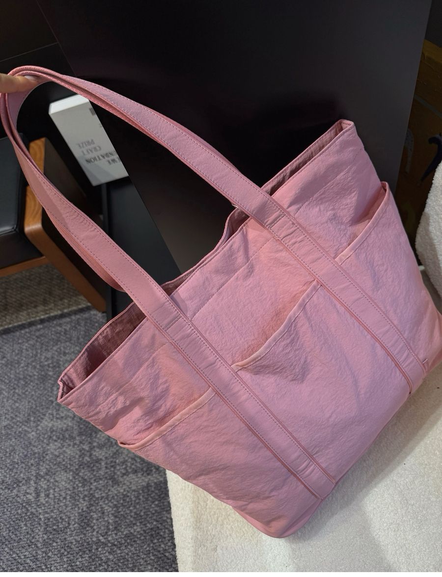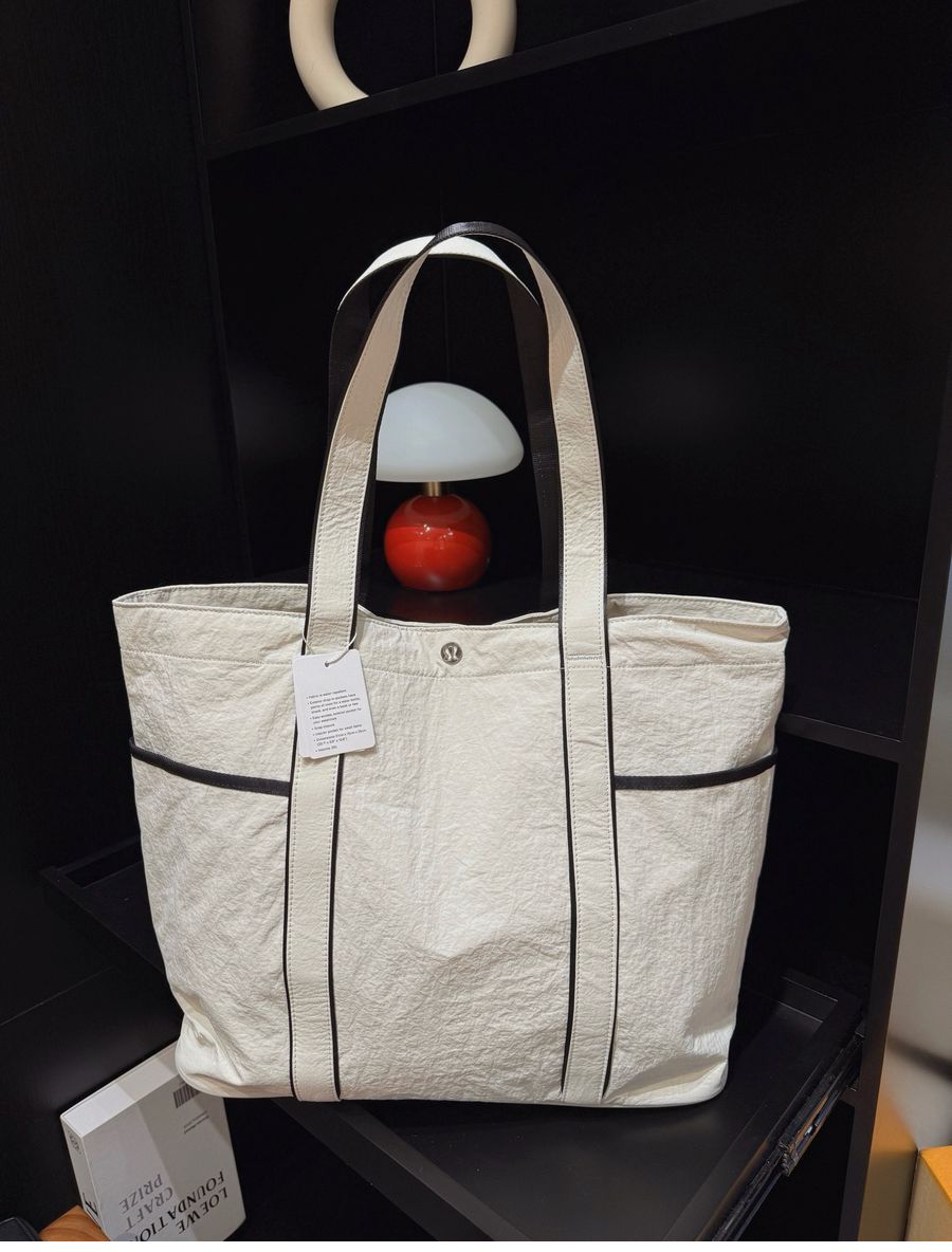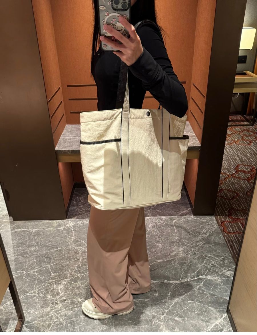 lu大爆款𝐃𝐚𝐢𝐥𝐲大帆布托特包 超实用的一只 无论是上班通勤还是运动健身都超实用 上身轻盈无压力 ! 所有宝妈也强推一只 出门真的超好用 原单安排 进口塔丝隆面料 面料都是定织定染的 表面做有独特泡泡皱处理 带来低调立体感 视觉丰富不单调 塔丝隆面料最大的特点就是它的经纬线需要采用不同规格的锦纶丝交织 使得面料更加耐磨、强韧 而且触摸轻盈舒爽 透气性也超级好 整个背在身上的舒适度是非常高的 面料经过防泼水处理 小雨泼溅也不担心 日常出行+户外场景全适配! ▪️容量:20L 超能装 ⚠️关于尺寸:51*15*35cm