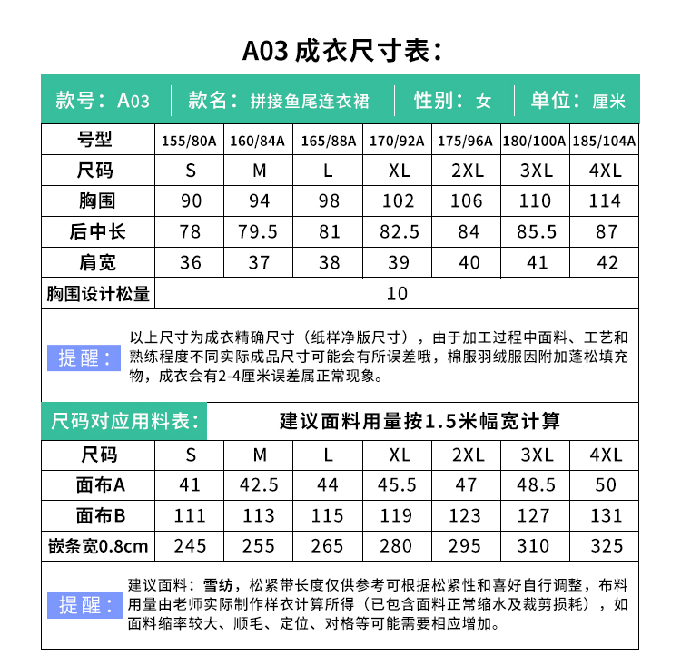 裁缝学苑A03拼接鱼尾连衣裙遮肚OL显瘦1:1服装纸样剪裁图纸牛皮纸