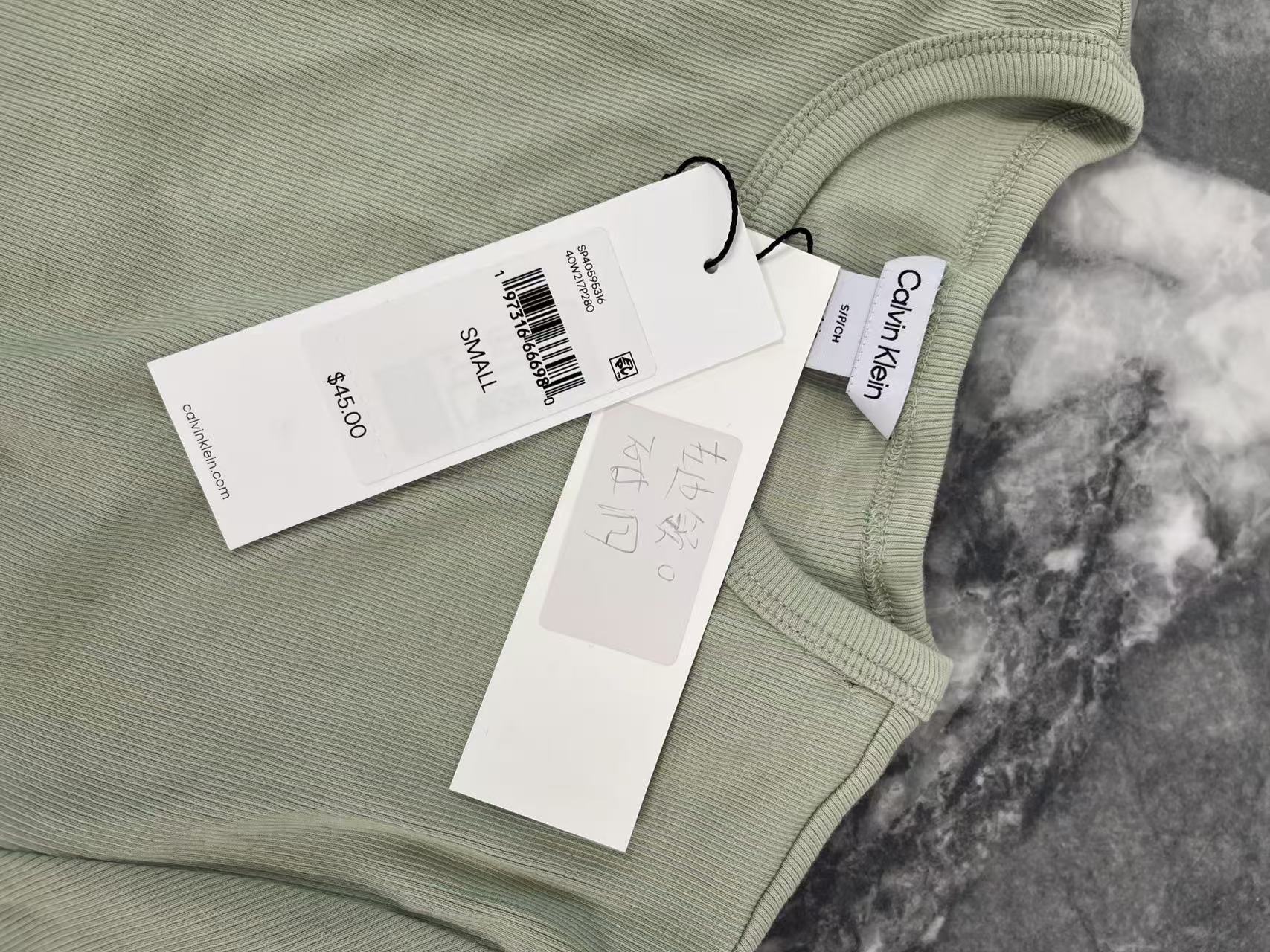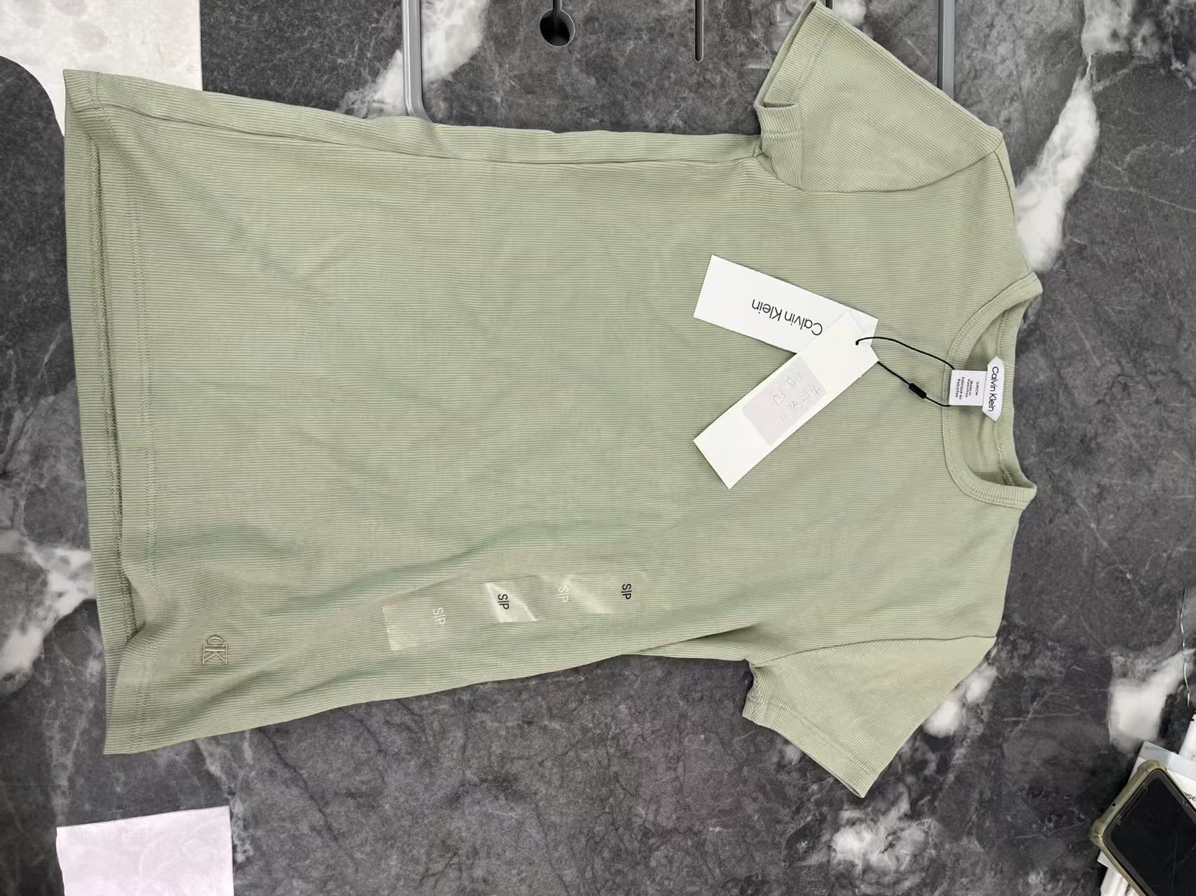 瑕疵Calvin Klein/CK 女士修身纯色棉混纺刺绣标罗纹透气休闲短袖T恤