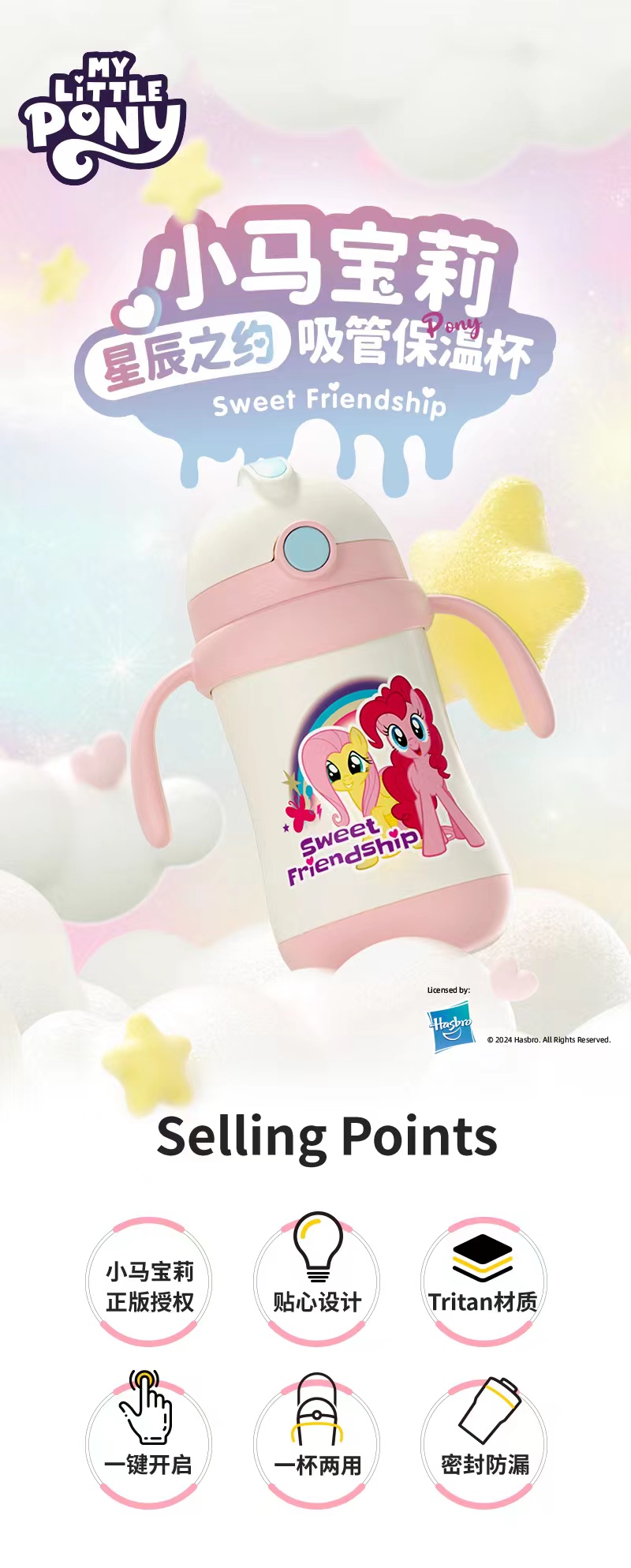 GERM360ML小马宝莉系列星辰之约吸管保温杯GE-LP24AW-DB106(粉色)