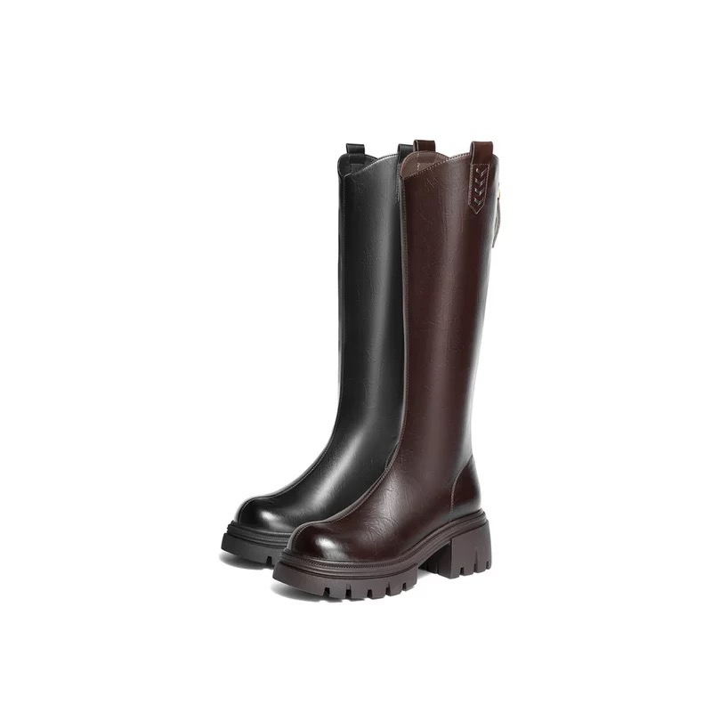 【云粉节】BF楼森达骑士靴2025冬季新款气质粗跟增高小V长筒靴XTL01吊牌价999活动价499