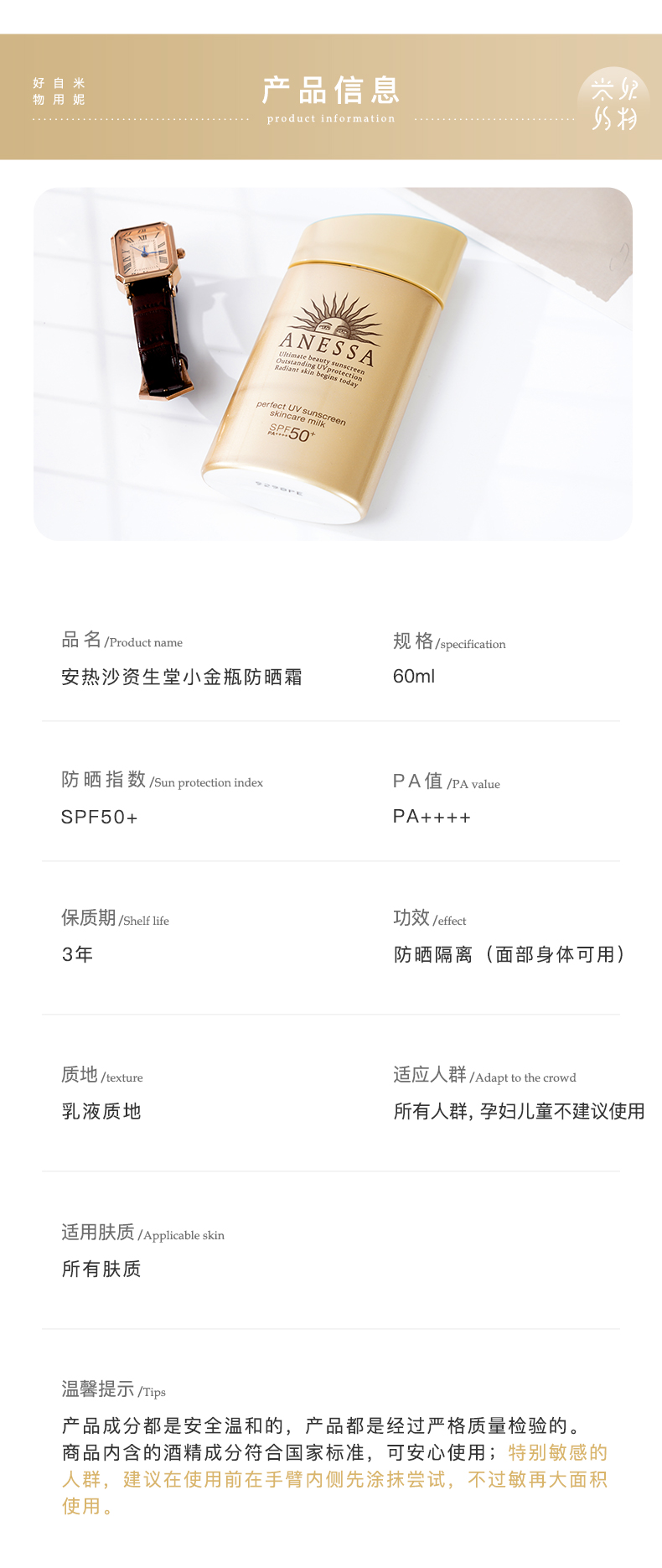 ANESSA/安热沙安耐晒 资生堂高倍防晒小金瓶60ml