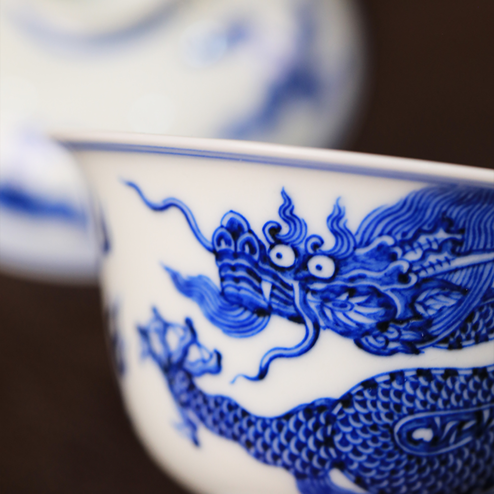 铭清堂仿明陶瓷霸王龙纹盖碗