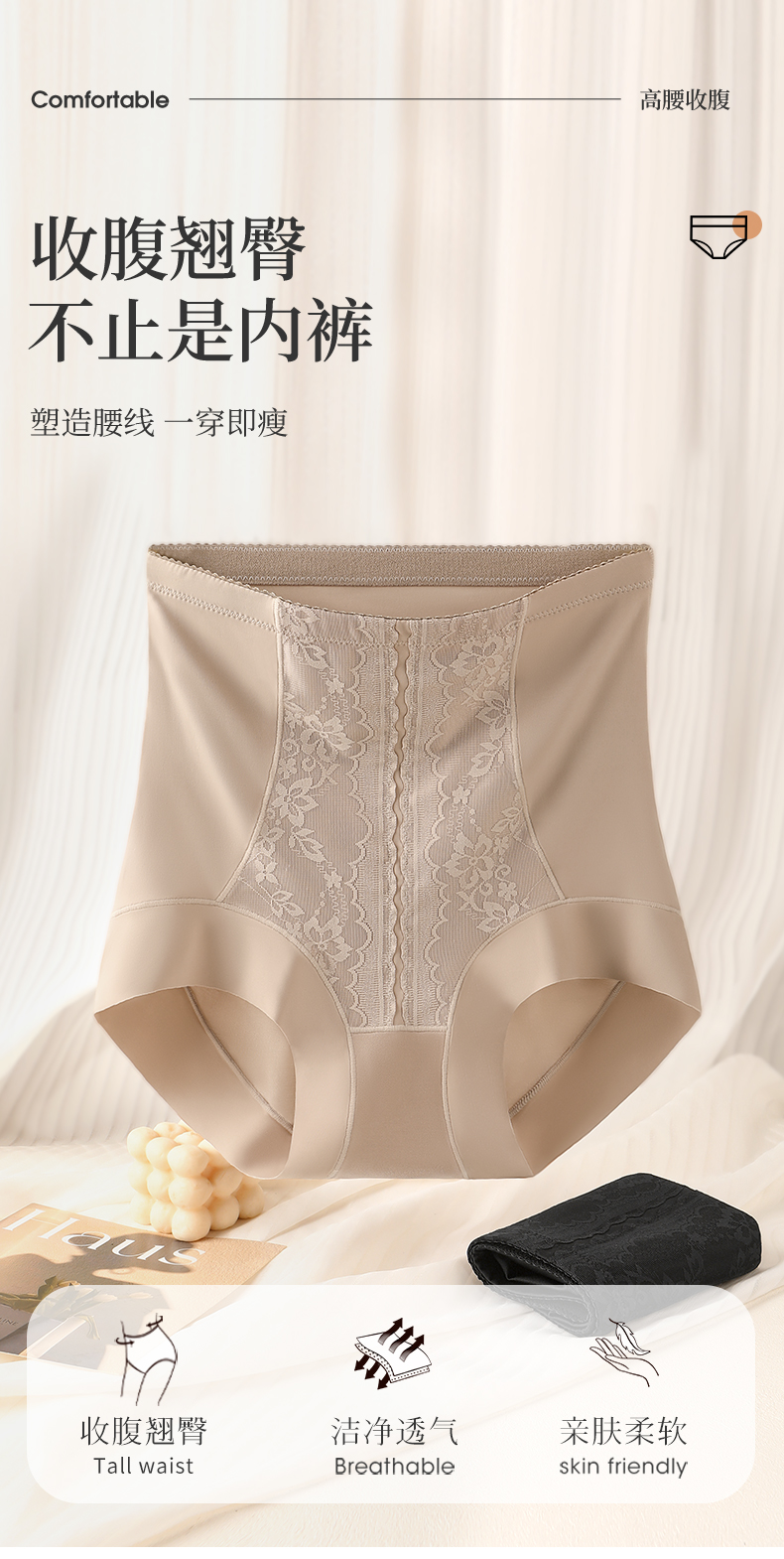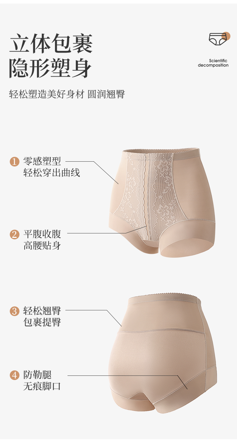 N2-【单条装】【含蚕丝裆】润微高腰弹力收腹内裤女高腰收腹提臀塑形塑身裤女士内裤 烙色星野