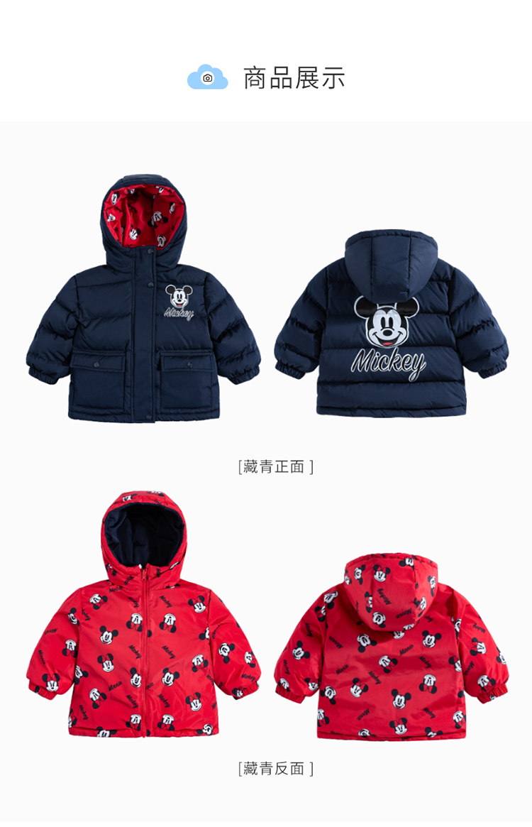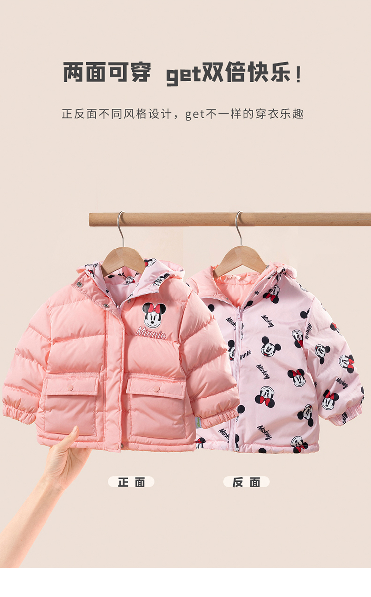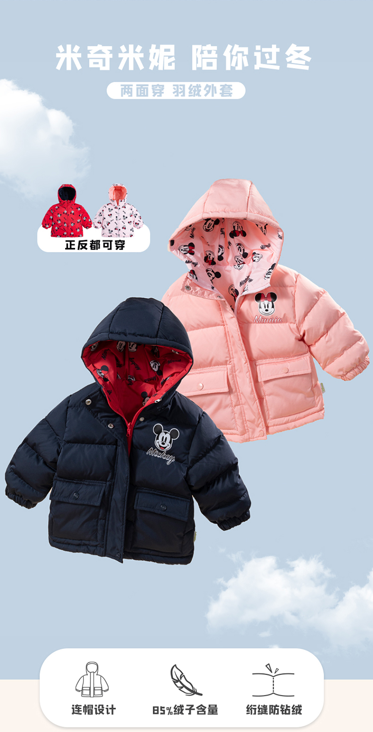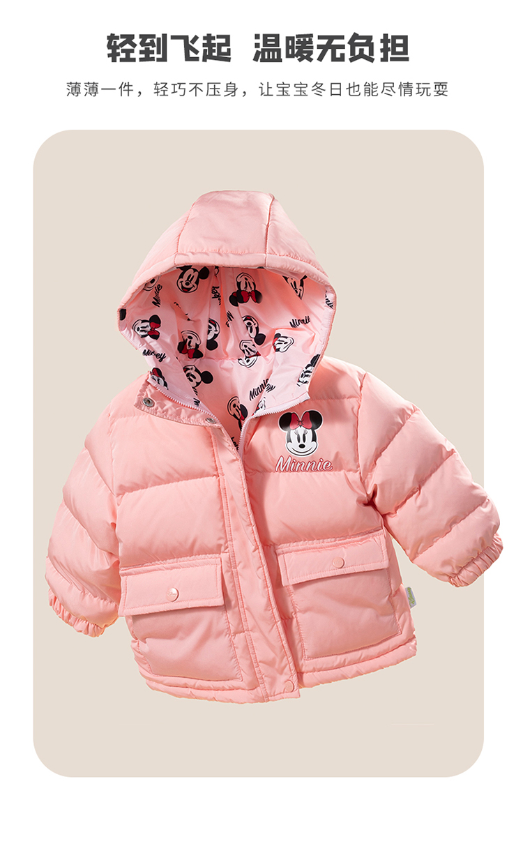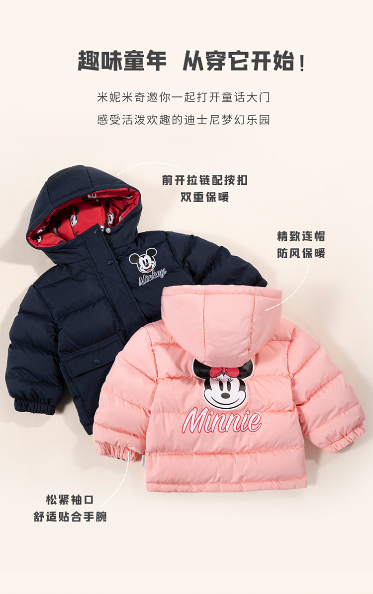 贝贝怡迪士尼联名童装男童女童羽绒服款轻便防风保暖连帽羽绒外套224S3113