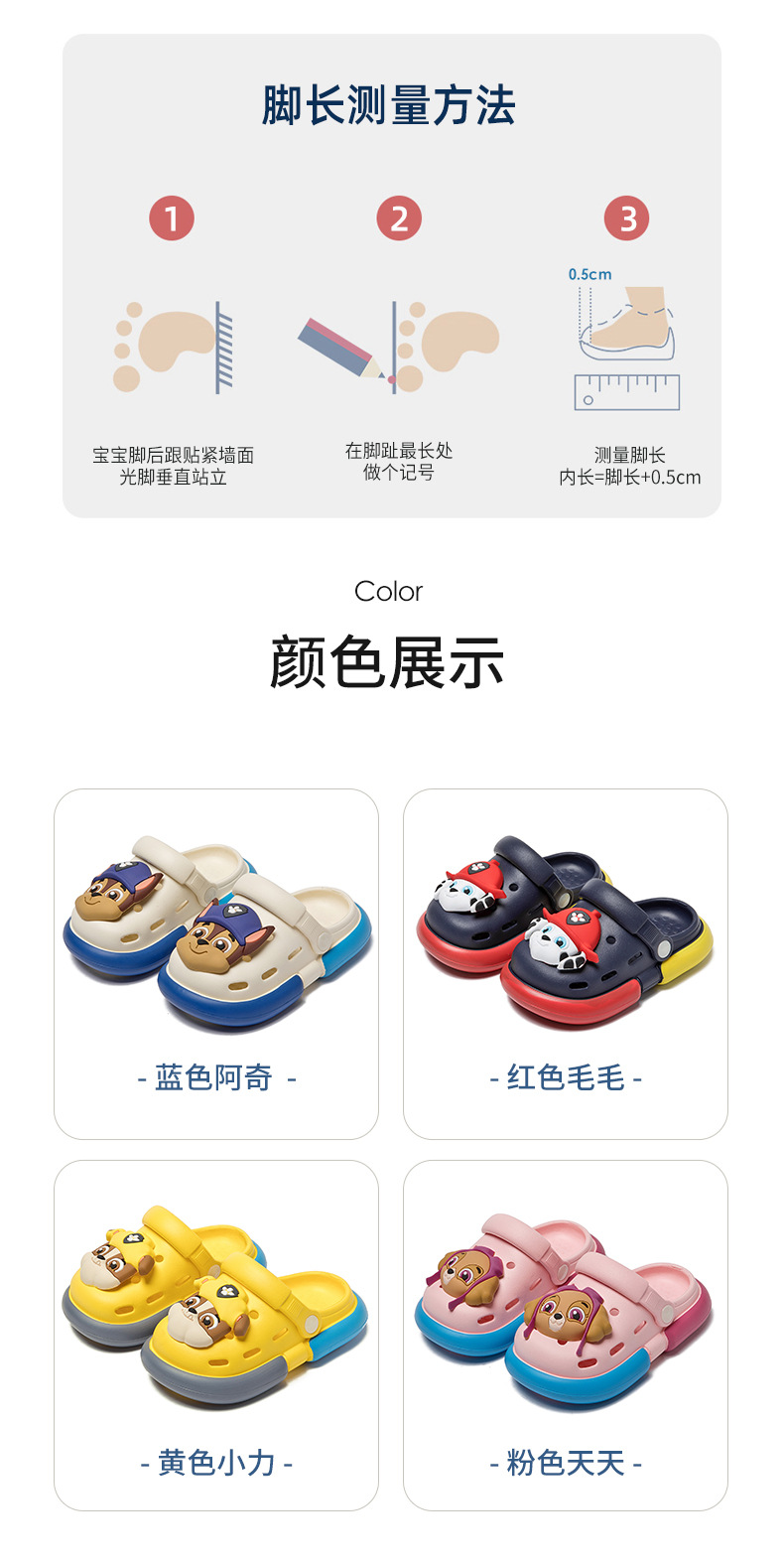 汪汪队洞洞鞋包头防撞儿童拖鞋夏室内防滑卡通小童宝宝外出沙滩鞋