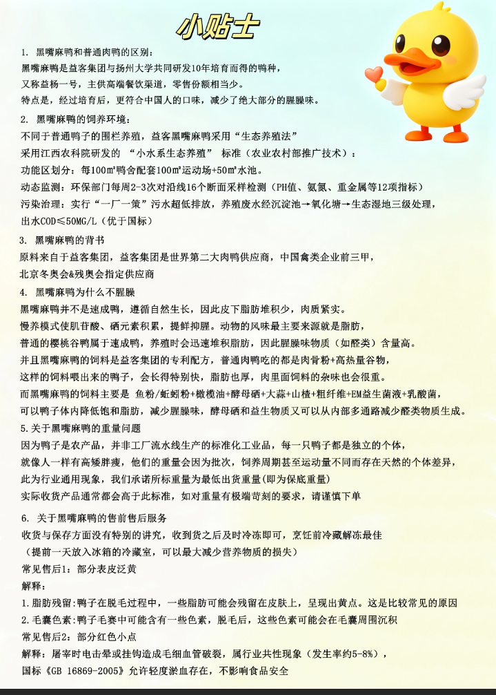 因为鸭子是农产品,并非工厂流水线生产的标准化工业品,每一只鸭子都是独立的个体,就像人一样有高矮胖瘦,他们的重量会因为批次,饲养周期甚至运动量不同而存在天然的个体差异,此为行业通用现象,我们承诺所标重量为最低出货重量(即为保底重量)实际收货产品通常都会高于此标准