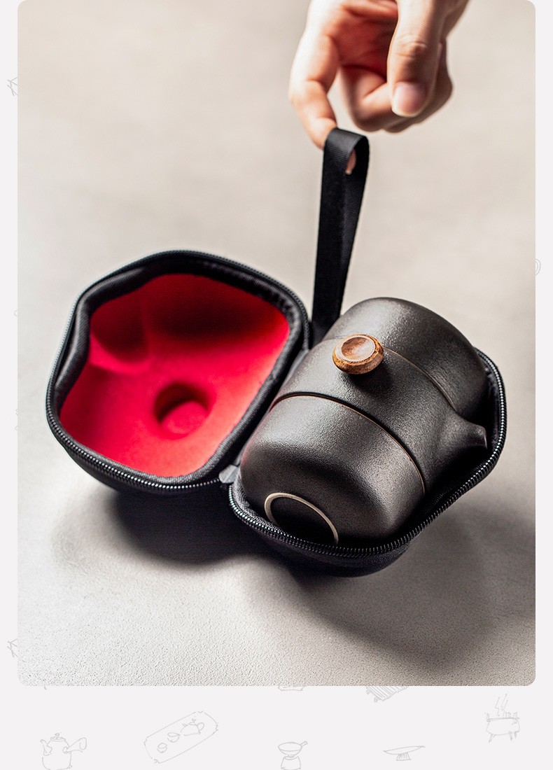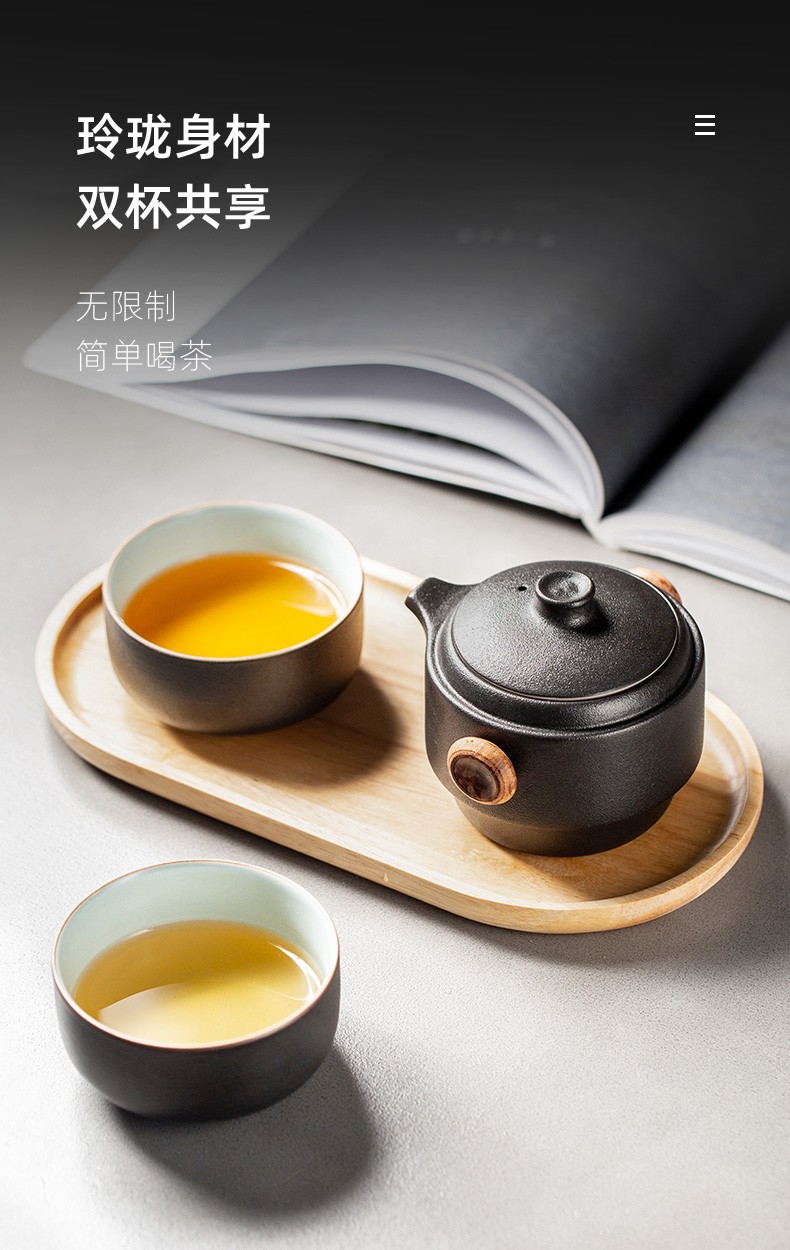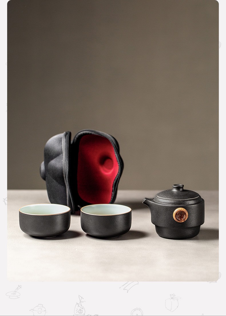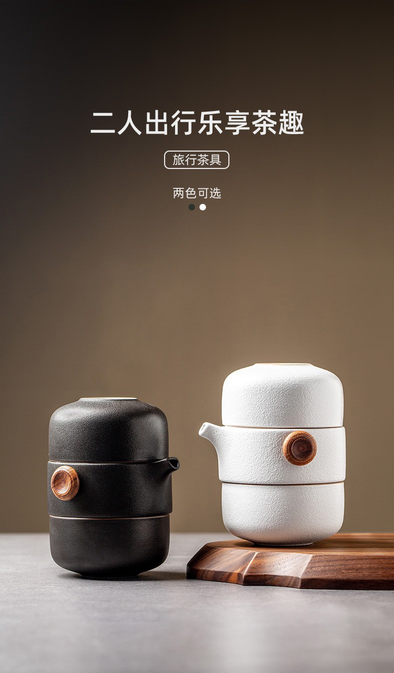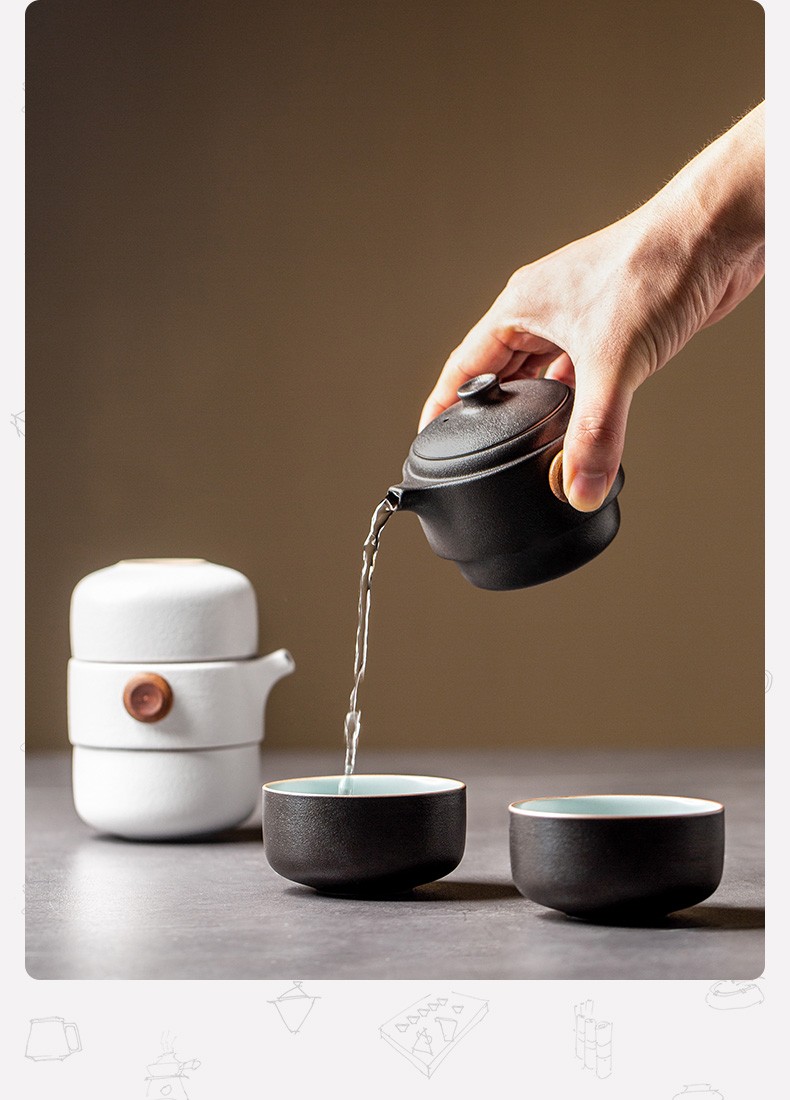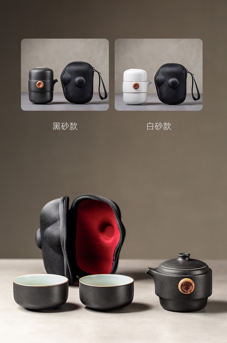 陶瓷旅行茶具套装快客杯一壶二杯便携式功夫茶壶套装户外简约 安然旅行茶具(白砂)