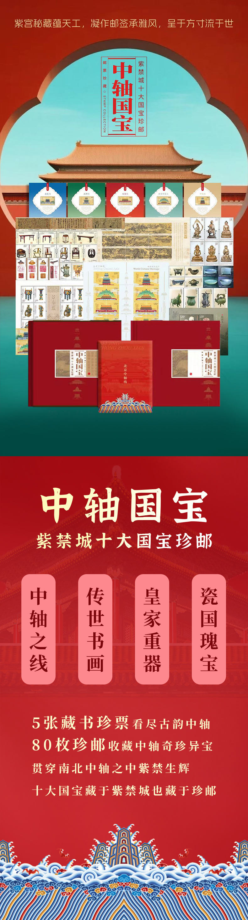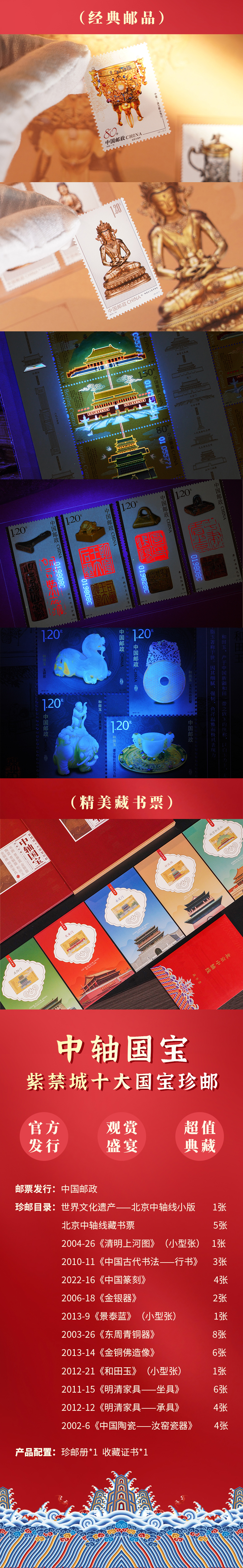 《中轴国宝》紫禁城十大国宝珍邮册