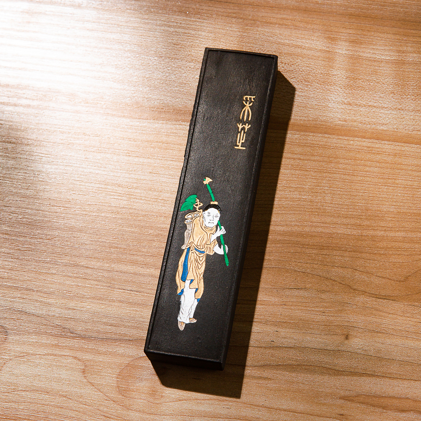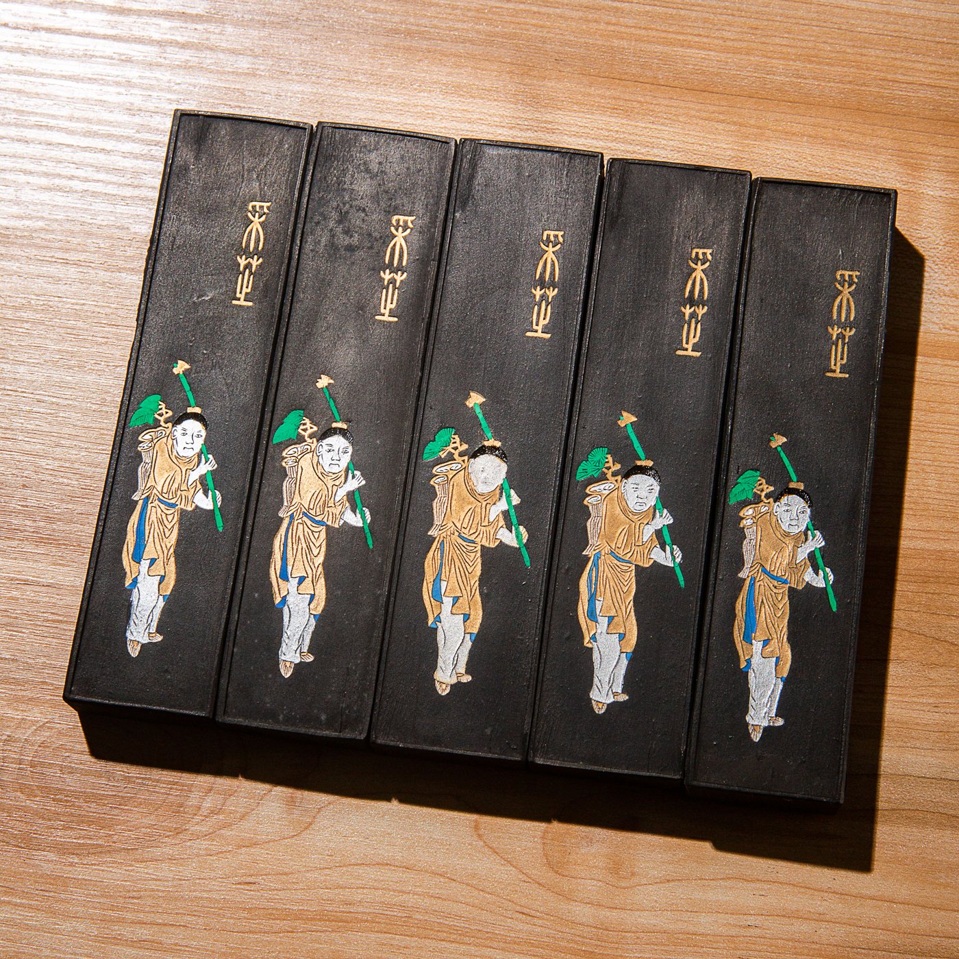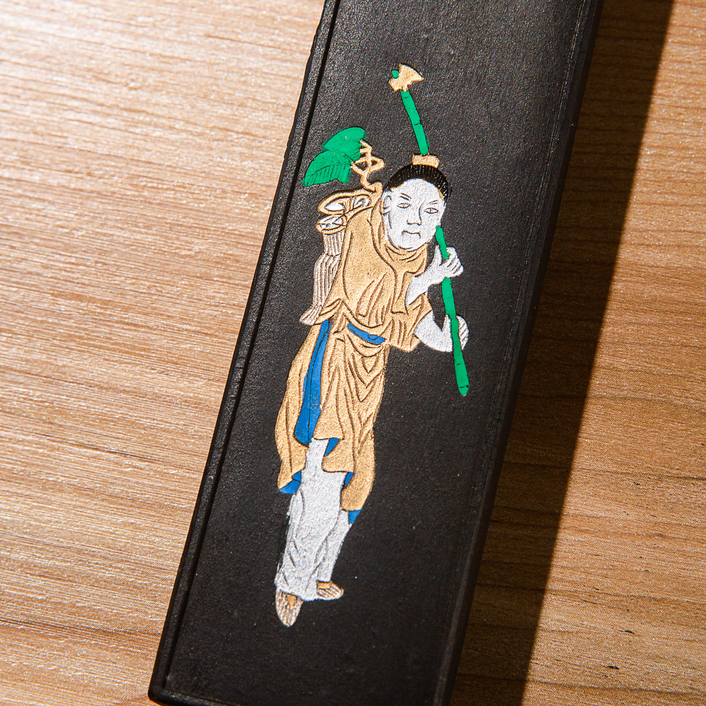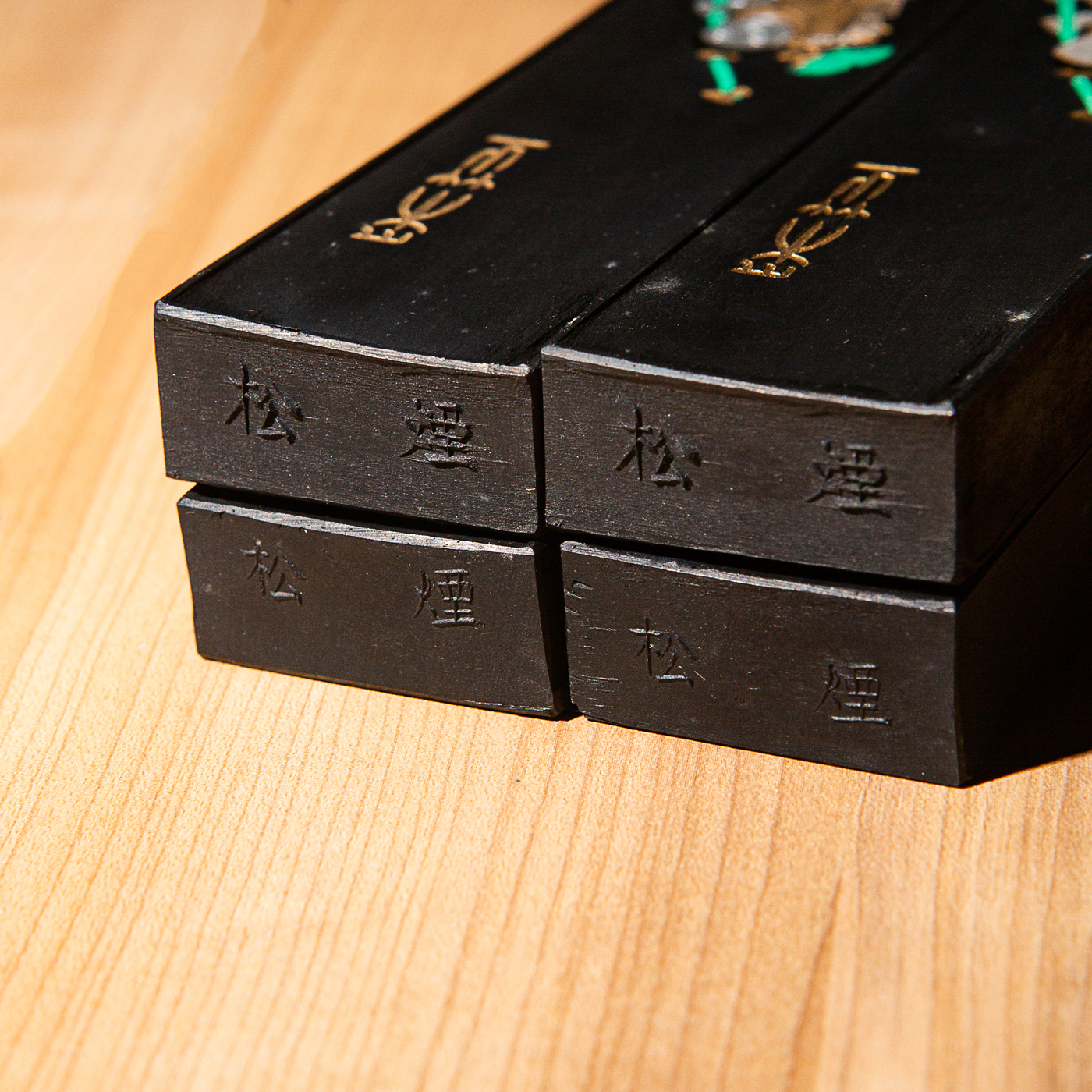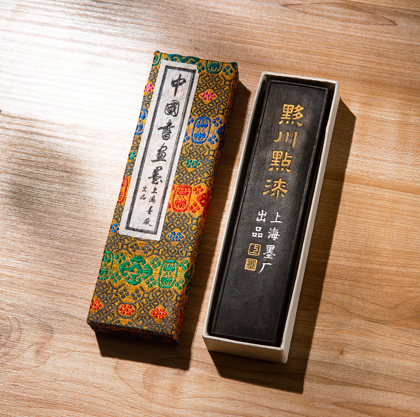 80年代上海墨厂制“黟川点漆”松烟老墨,重二两,用料精细,雕版精美,墨色沉稳,胶性轻顺,极为难得。