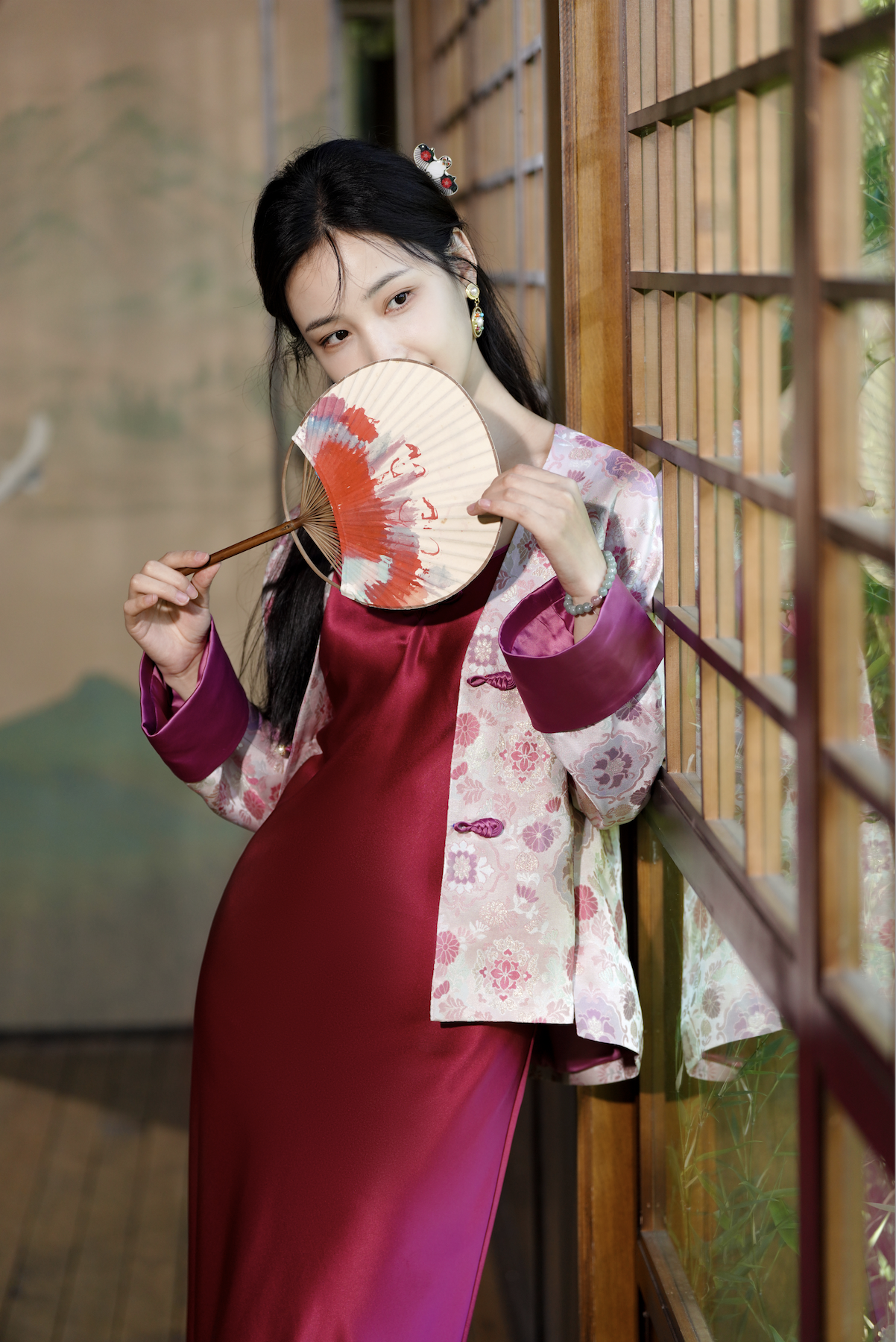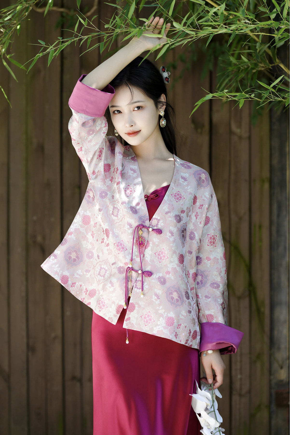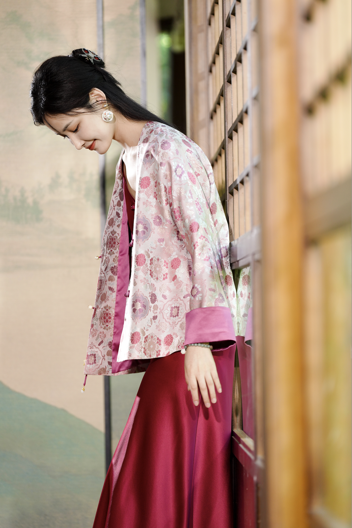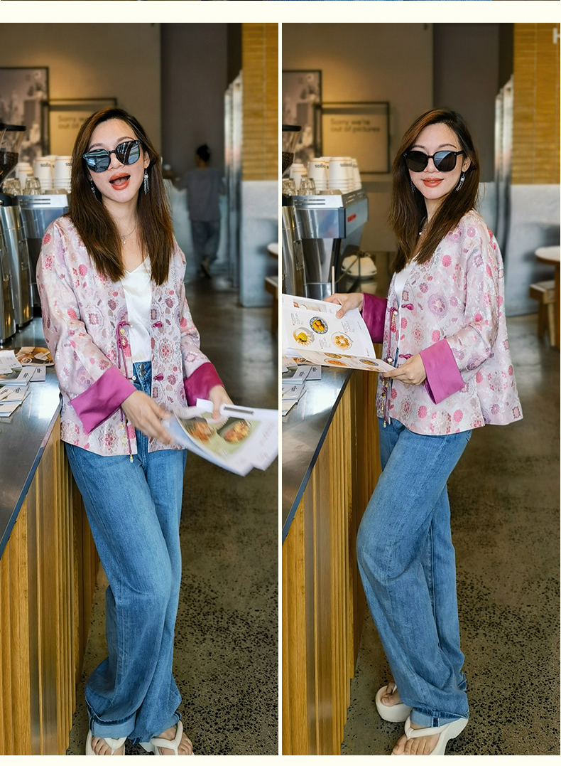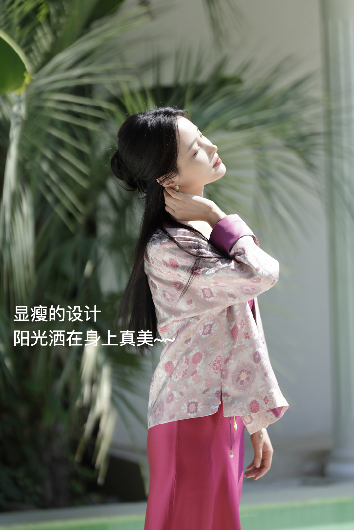 🎋市面上的宋锦一般普通人驾驭起来稍微有点难度,有一点茧形的蓬松感会容易显胖~~所以红颜家的设计师思如,在设计的时候,专门给版型做了显瘦的设计.穿在身上真的好惊艳~!!