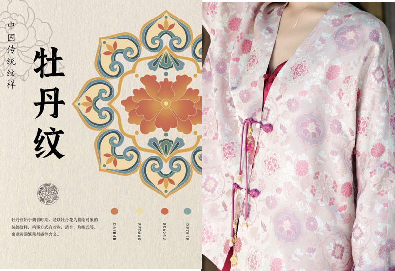 ·牡丹纹花瓣层层叠叠,营造出一种“繁”且“满”的堆砌效果,有一种雍容华贵的美感。