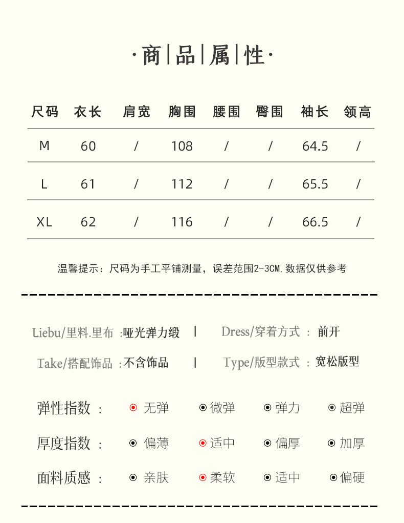 🎋衣长:60cm。长袖。前开襟。无弹。