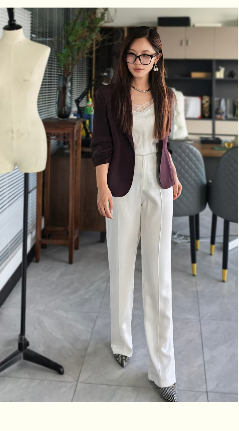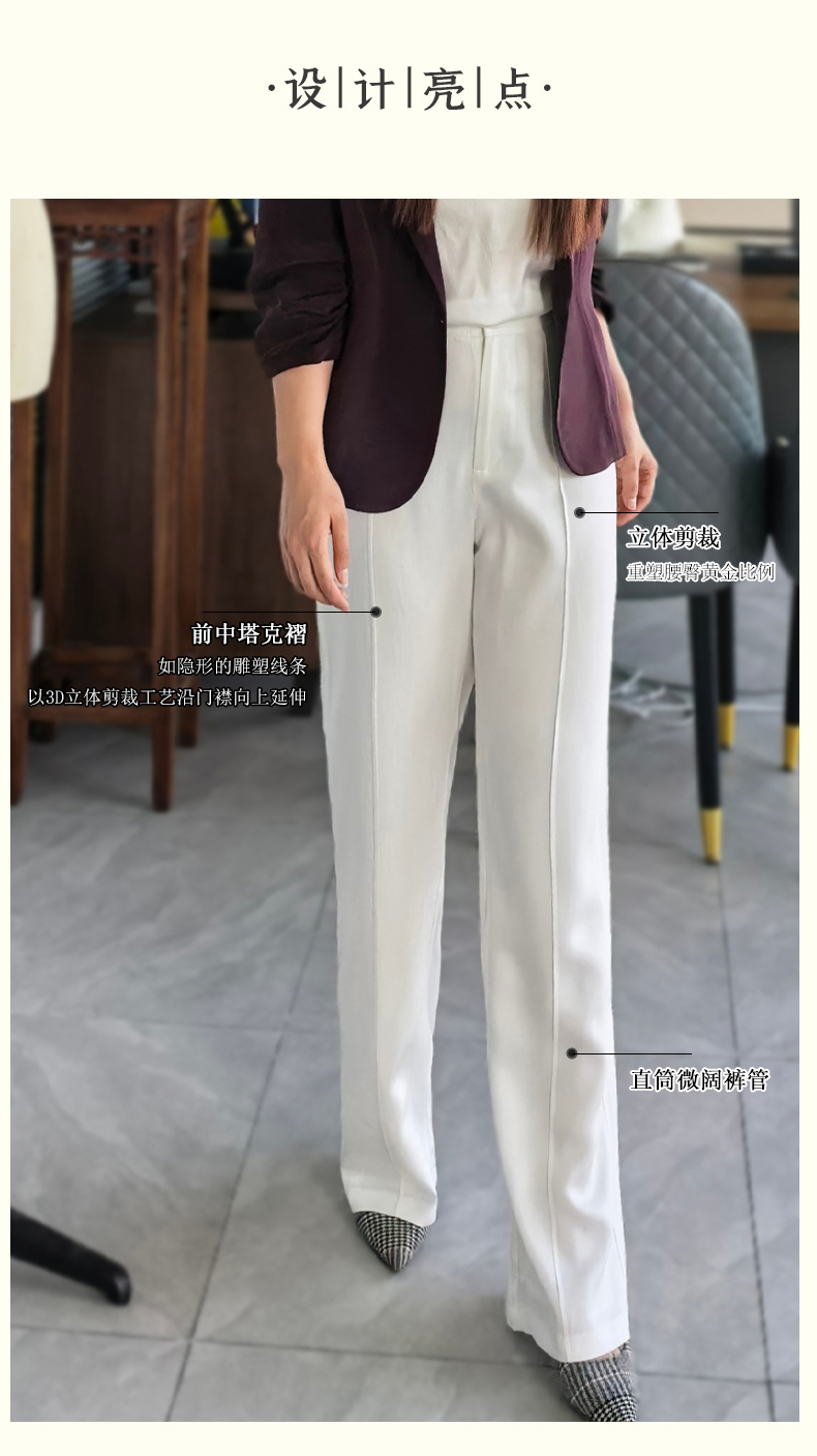 直筒微阔裤管:从大腿到脚踝的流畅线条,修饰腿型如滤镜加持,O型腿、小粗腿瞬间隐形,搭配微弹面料,行动自如无束缚。