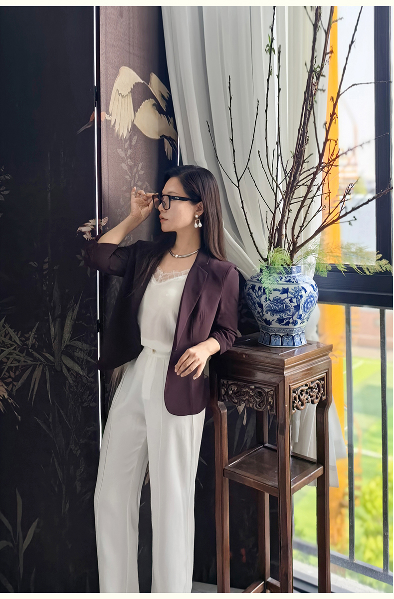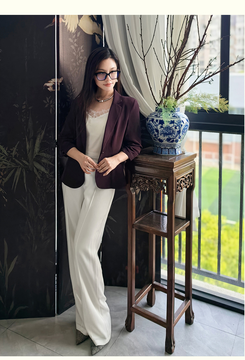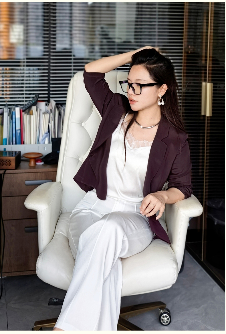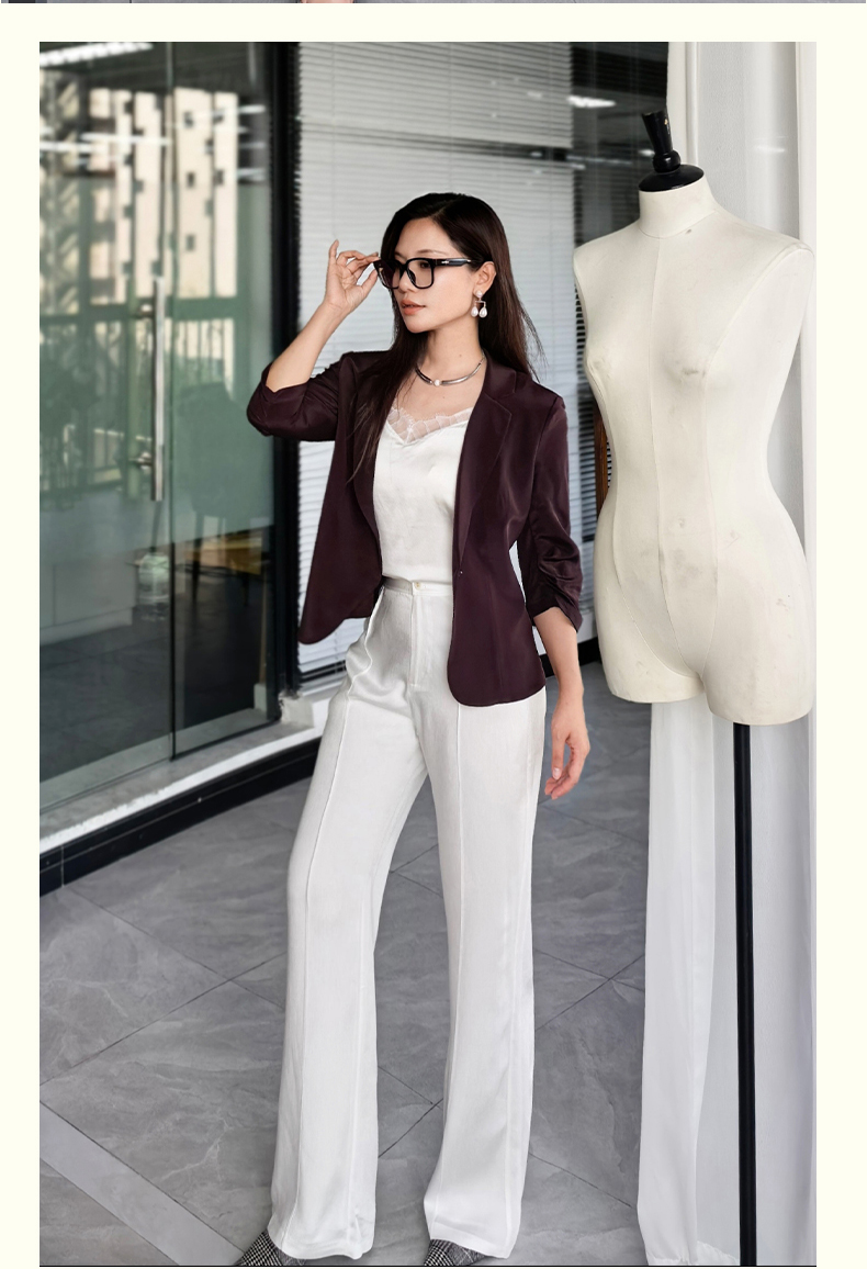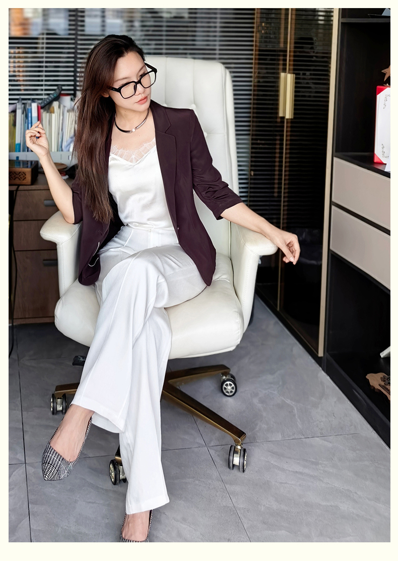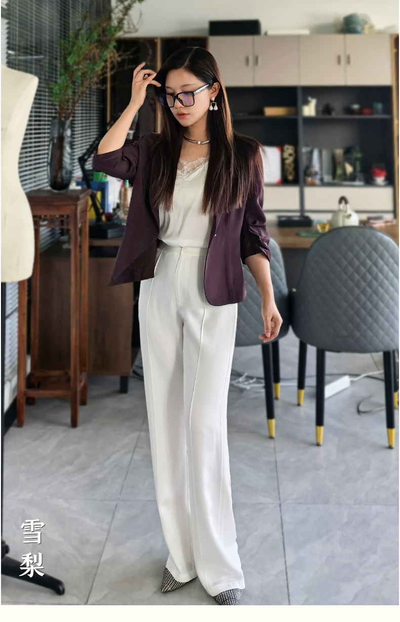 🎐通勤精英范:搭配真丝西装外套+尖头皮鞋,塔克褶的精致感与西装利落线条呼应,诠释都市摩登美学。