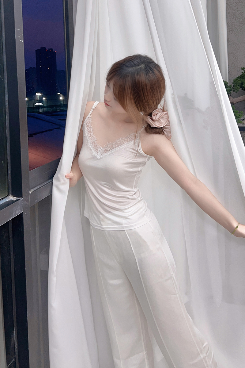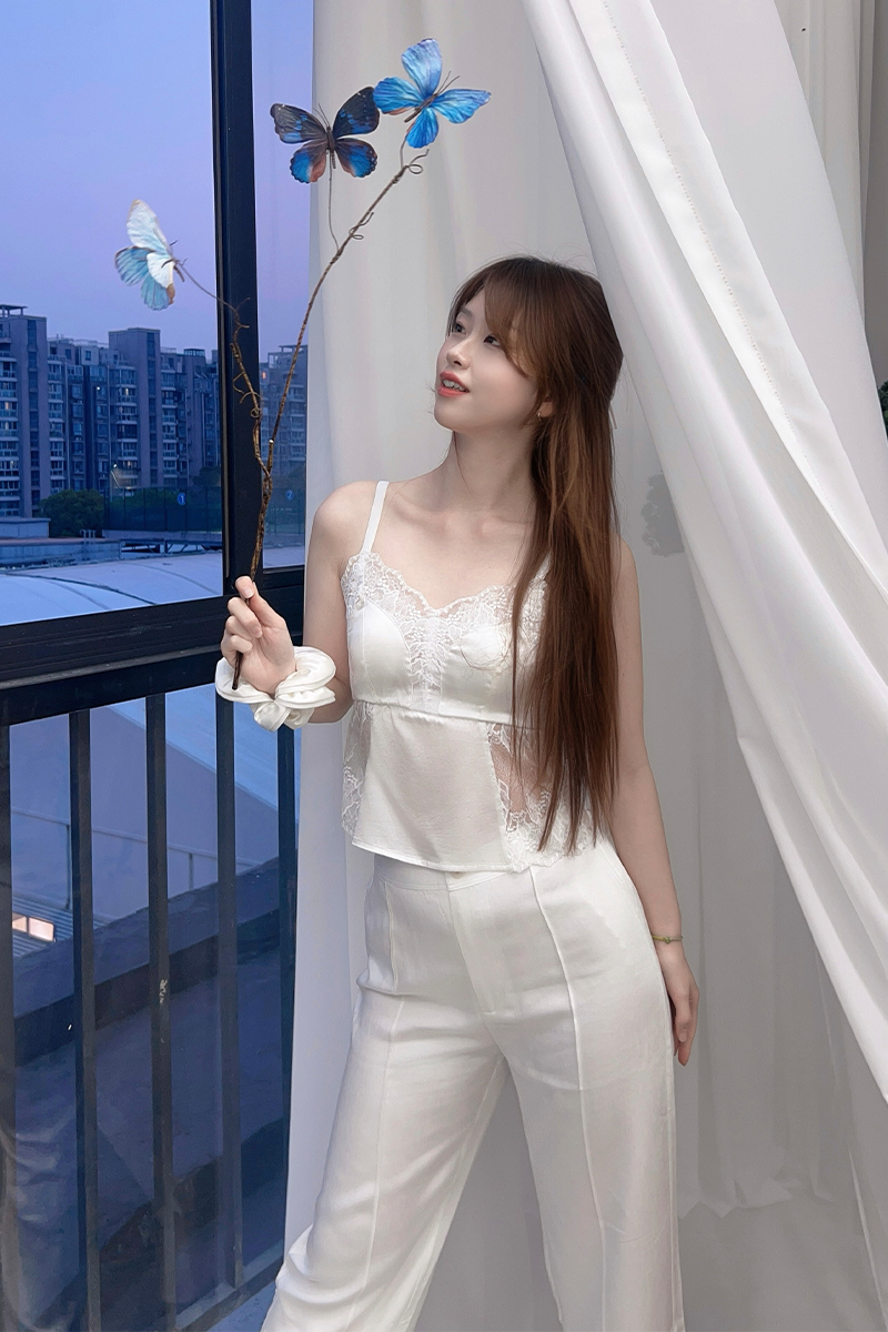 🎐轻甜约会装:内搭蕾丝吊带+缎面凉鞋,面料光泽与配饰细节交织,浪漫中透出低调奢华。