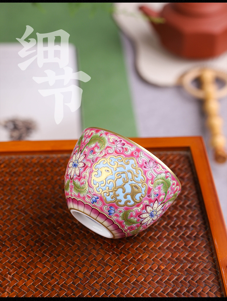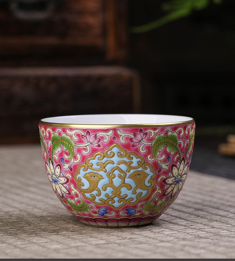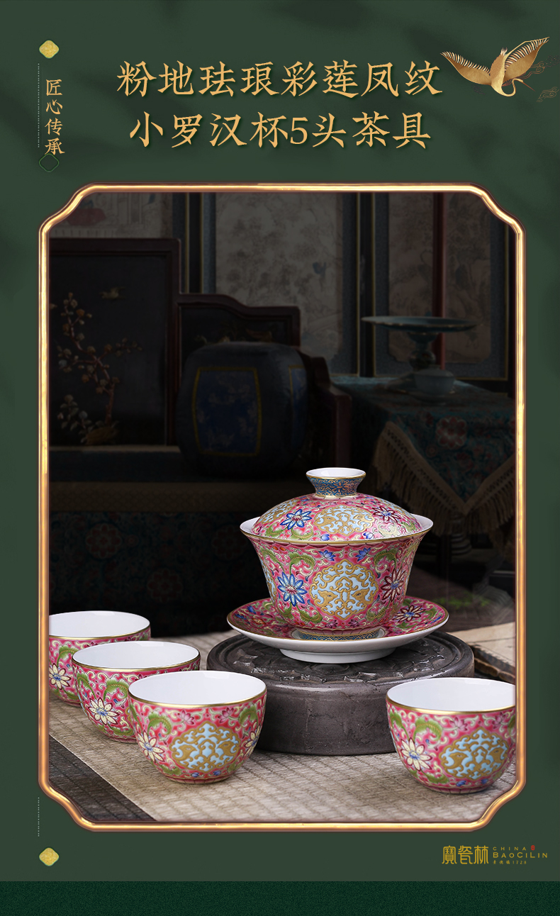 珐琅彩粉地莲凤纹小罗汉杯五头