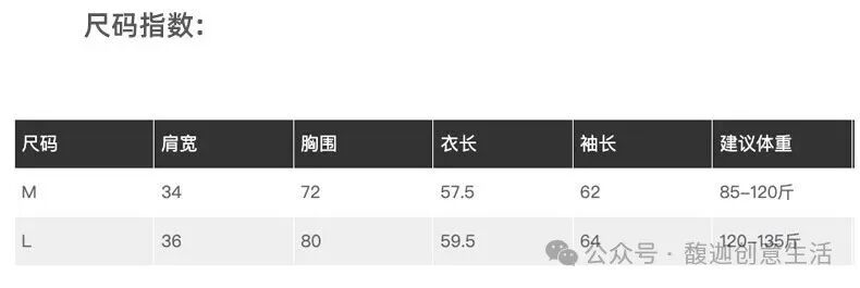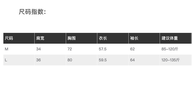 建议体重85-135斤,M/L两码可选,满足不同身材需求。