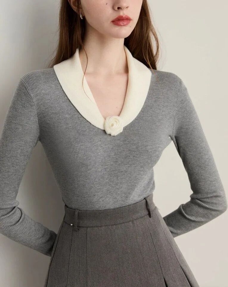 今天,我们为你带来——馥迦法式灰色花朵翻领针织衫,用极简线条勾勒出法式浪漫,以匠心细节诠释高级穿搭。