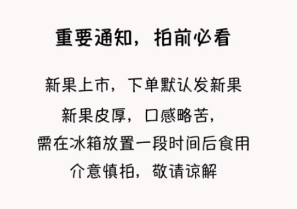 温馨提示 :10月份上架的是新果,果皮相比之前会略厚一些,汁水少一些,但是芳香气味更浓,介意慎拍!!
