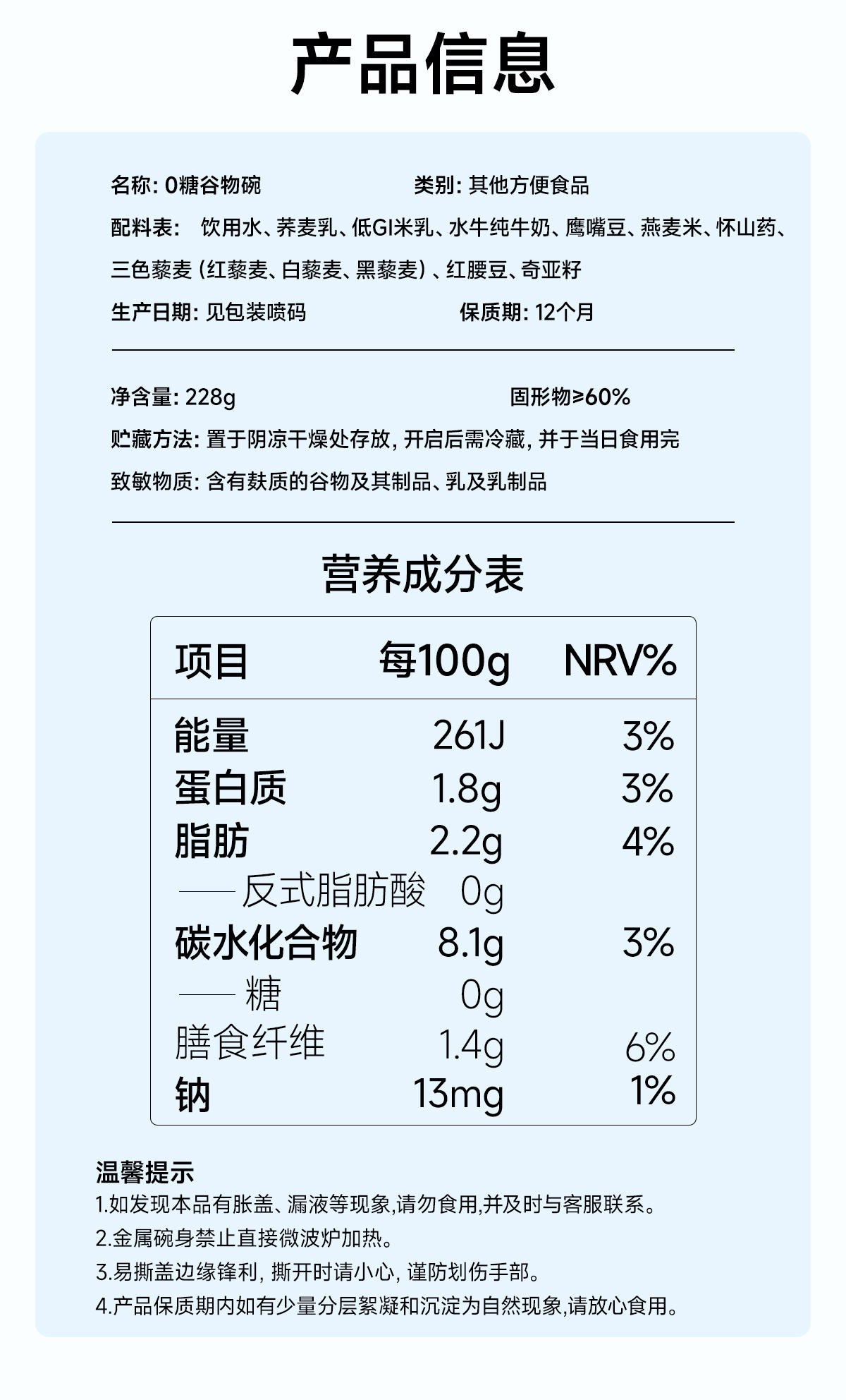 【老客专属】极盏 0糖(无糖)谷物碗 即食早餐代餐首选 228g*8碗起