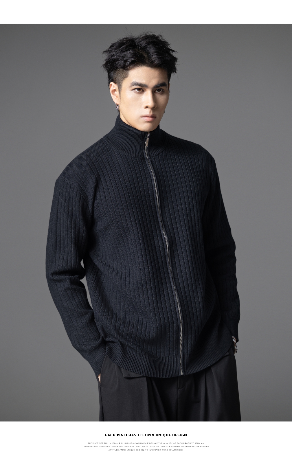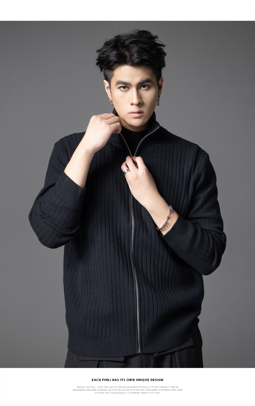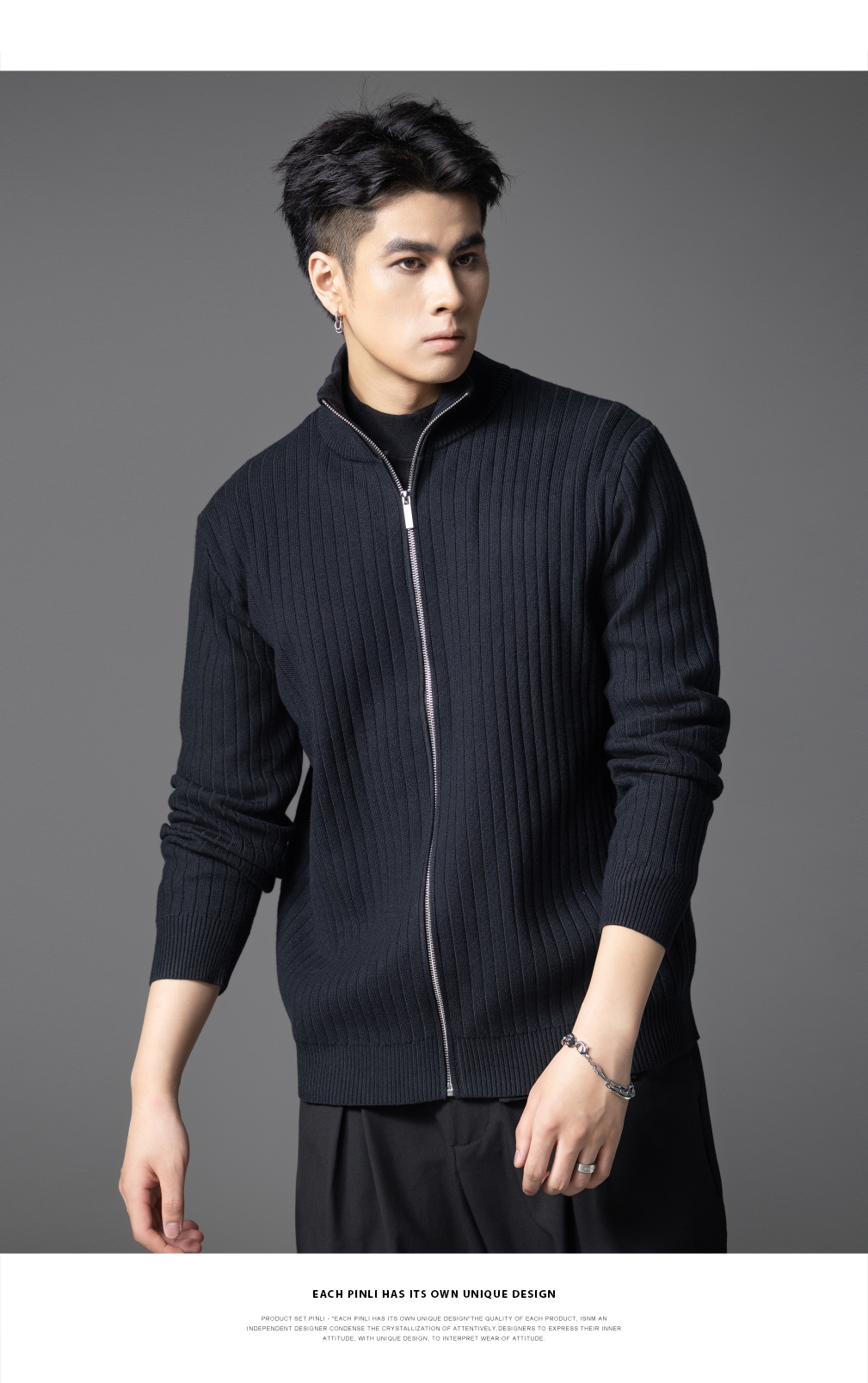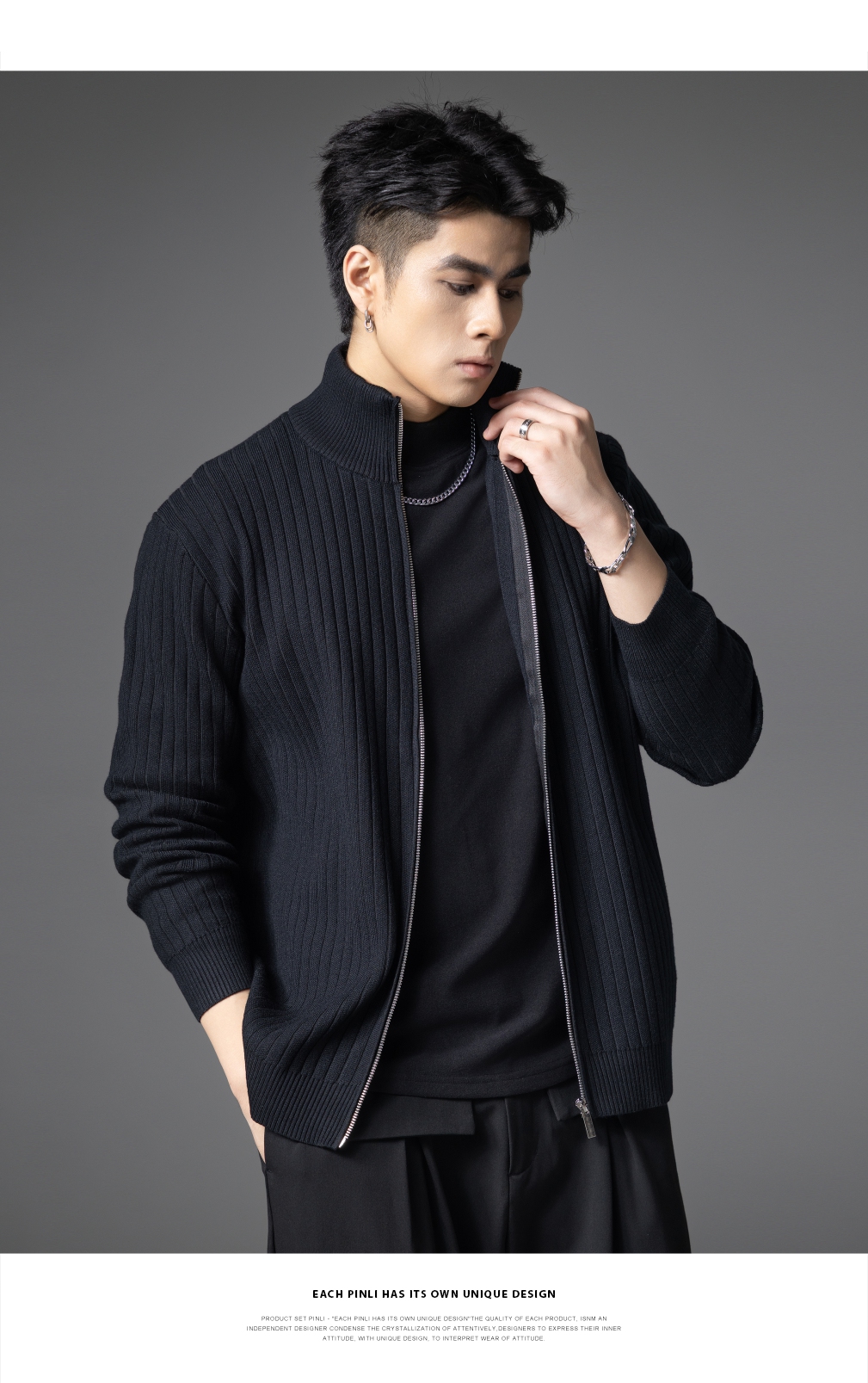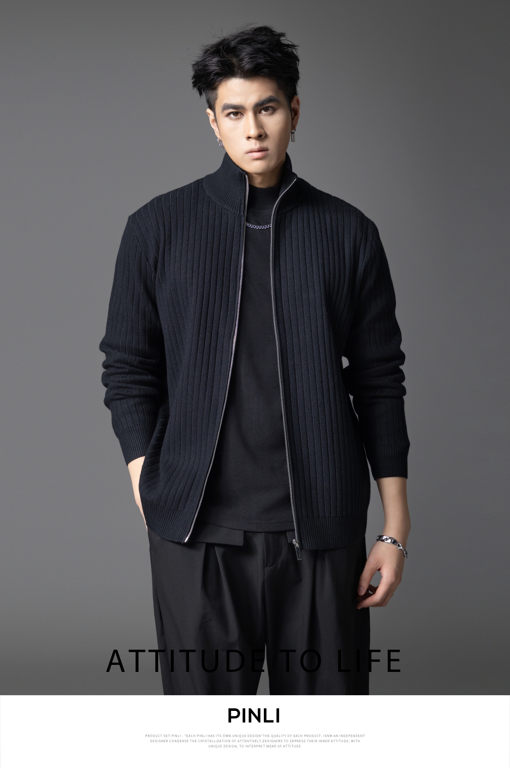 PINLI品立2025秋季新品立领拉链开衫针织衫男士潮牌毛衣外套上衣GD253110082