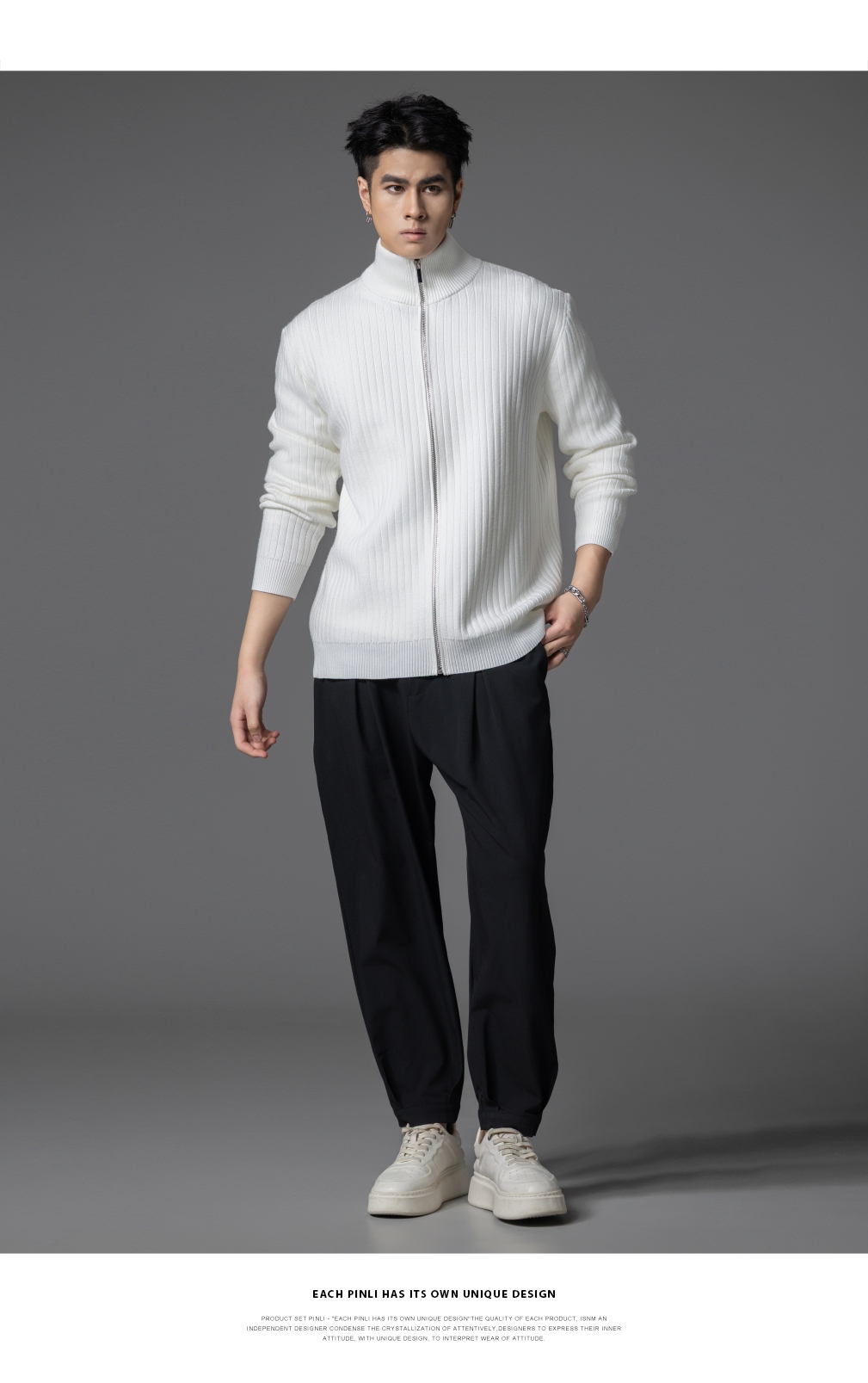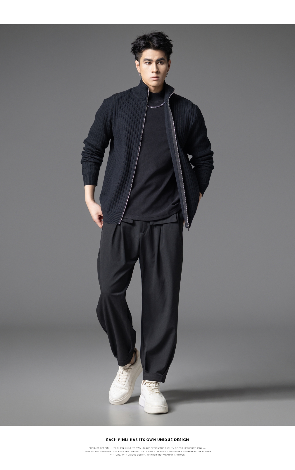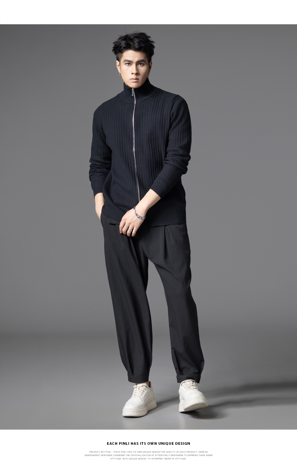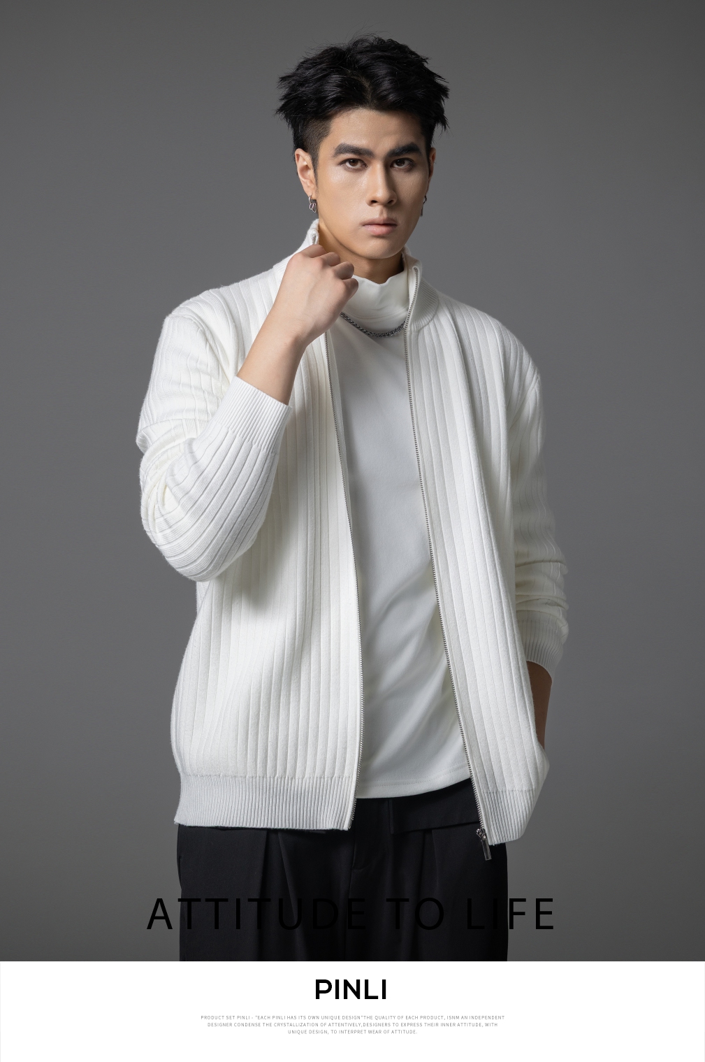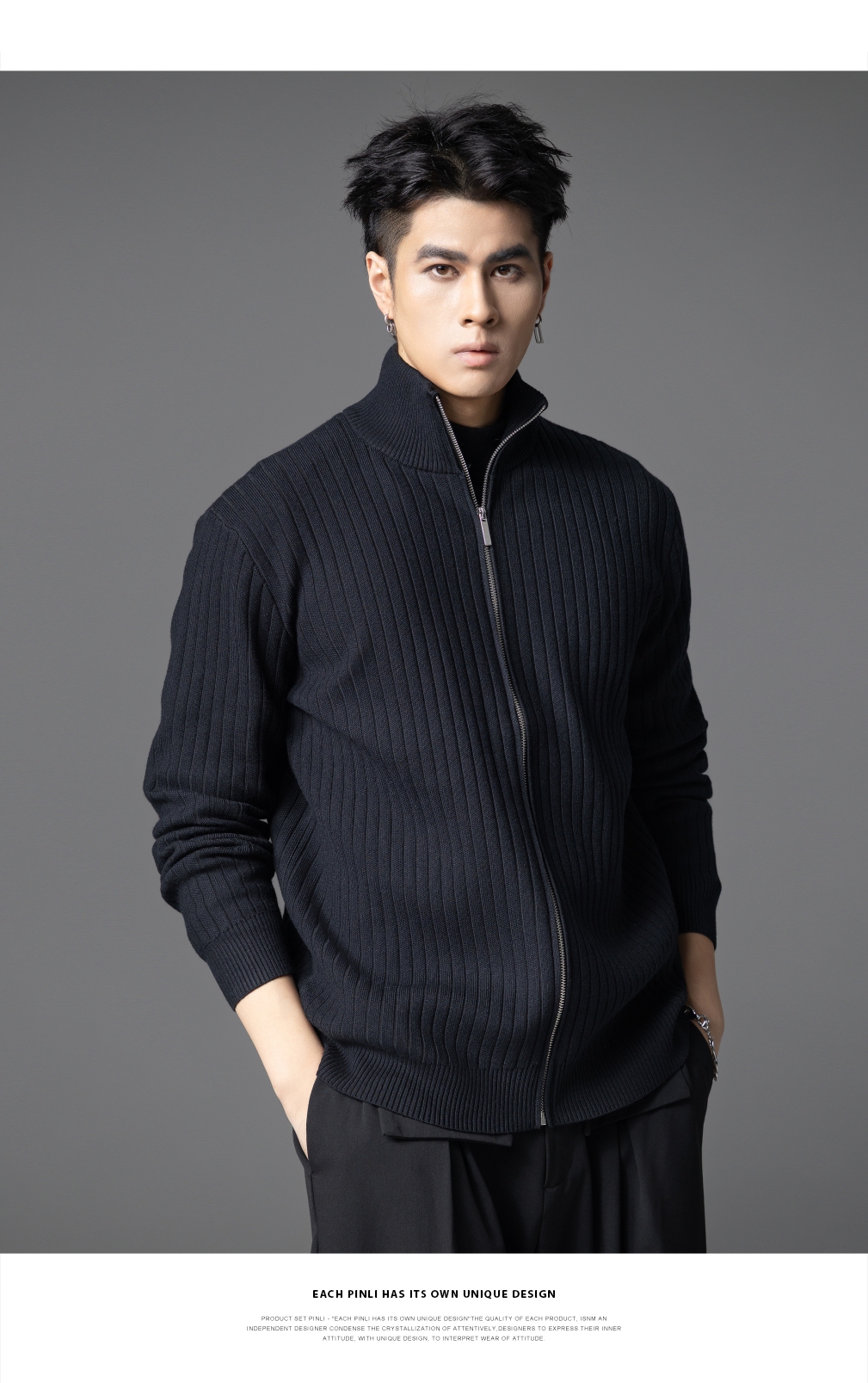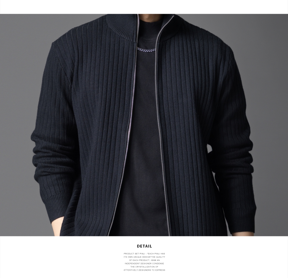 PINLI品立2025秋季新品立领拉链开衫针织衫男士潮牌毛衣外套上衣GD253110082