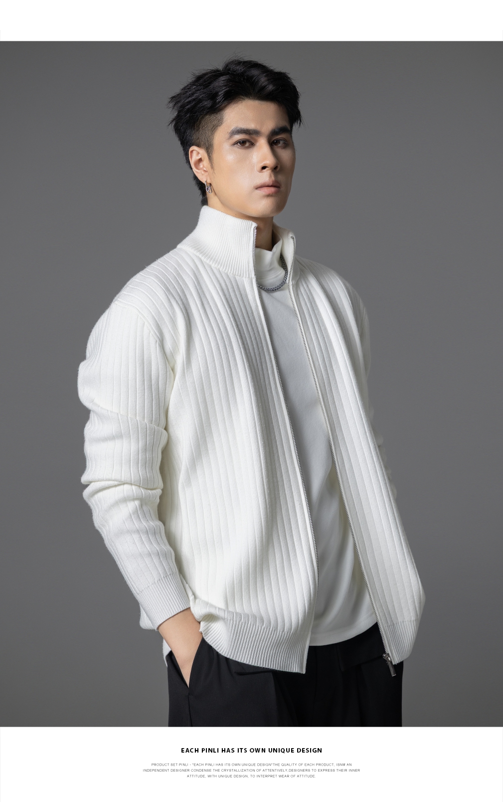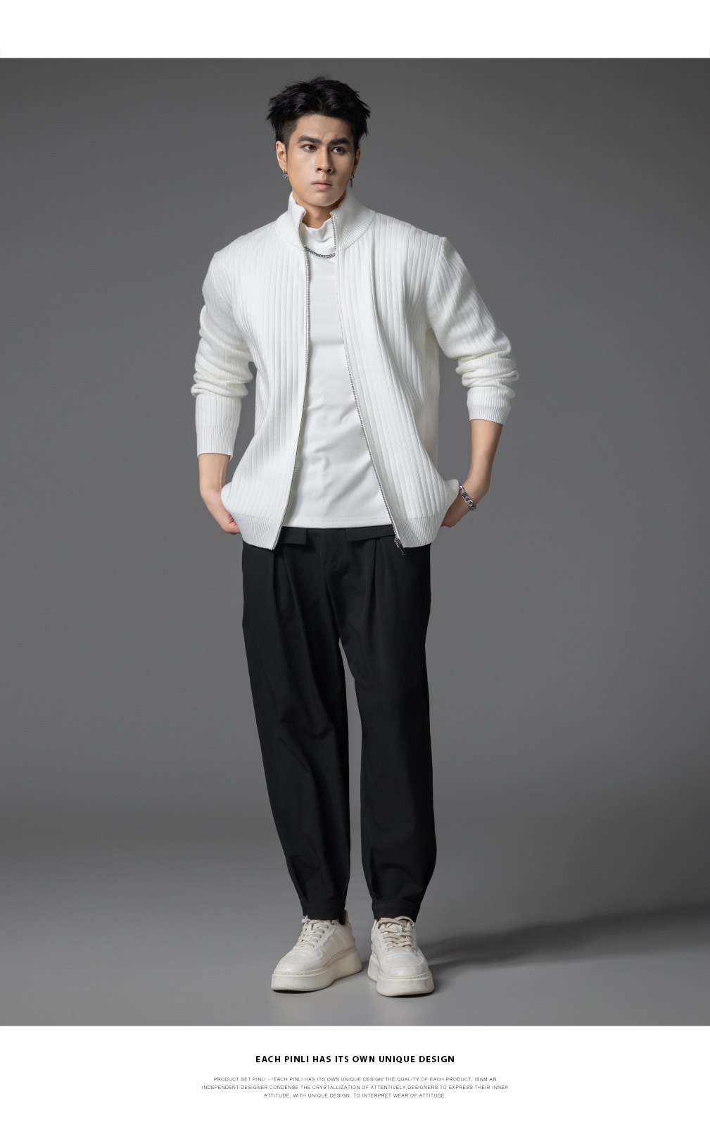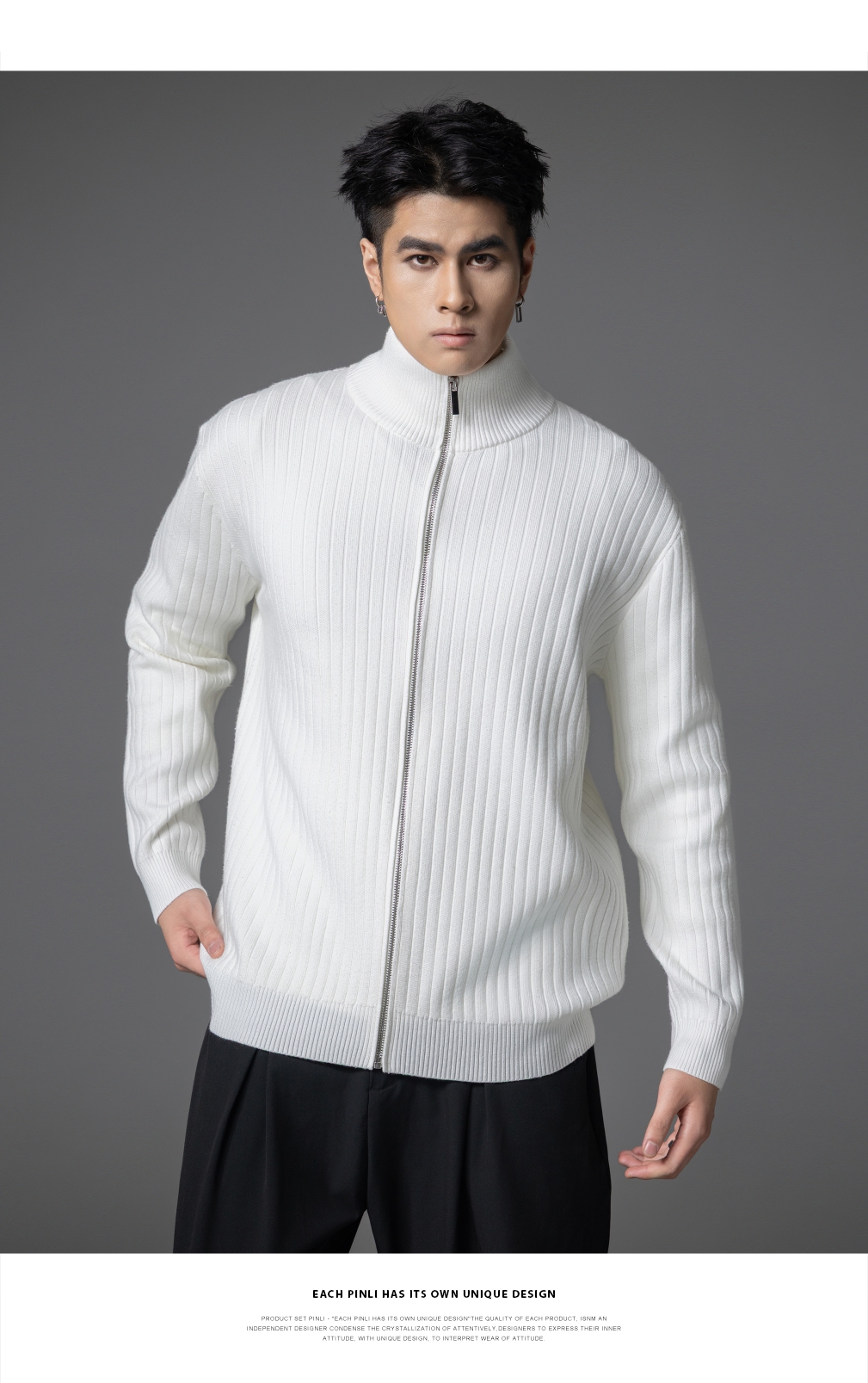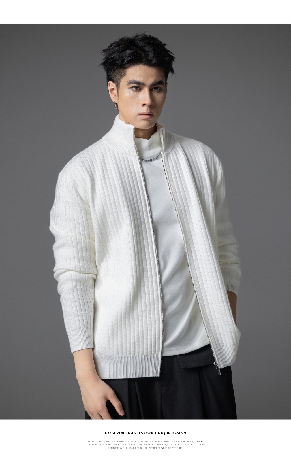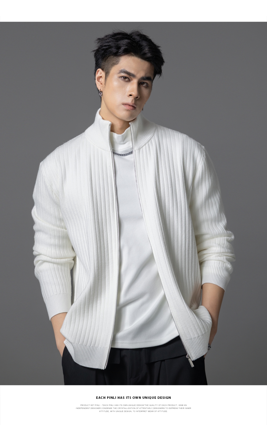 PINLI品立2025秋季新品立领拉链开衫针织衫男士潮牌毛衣外套上衣GD253110082