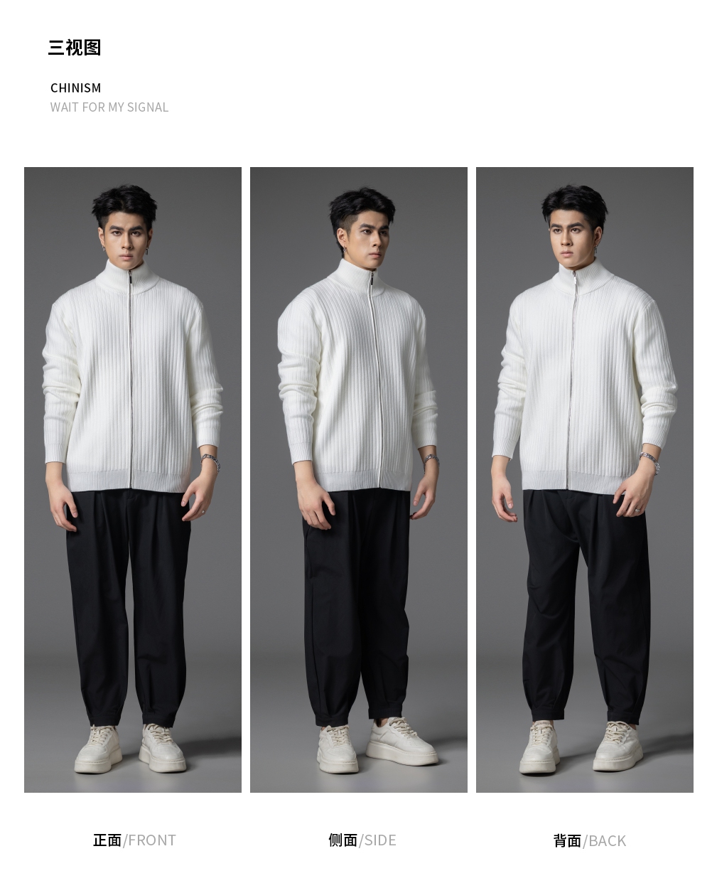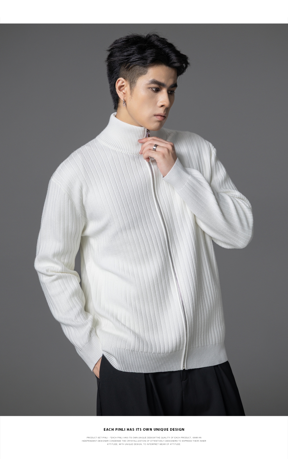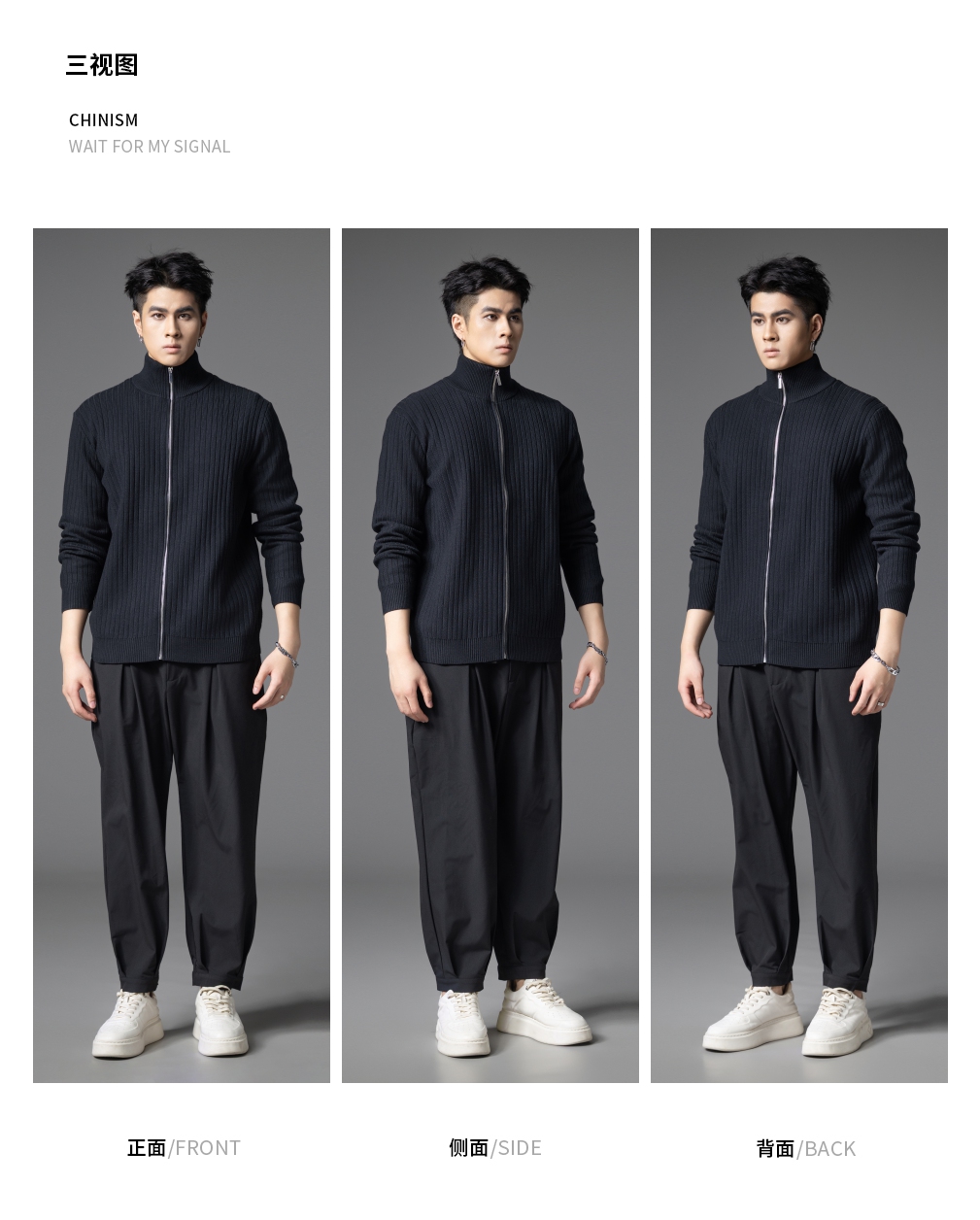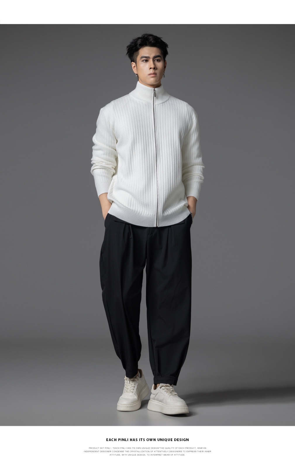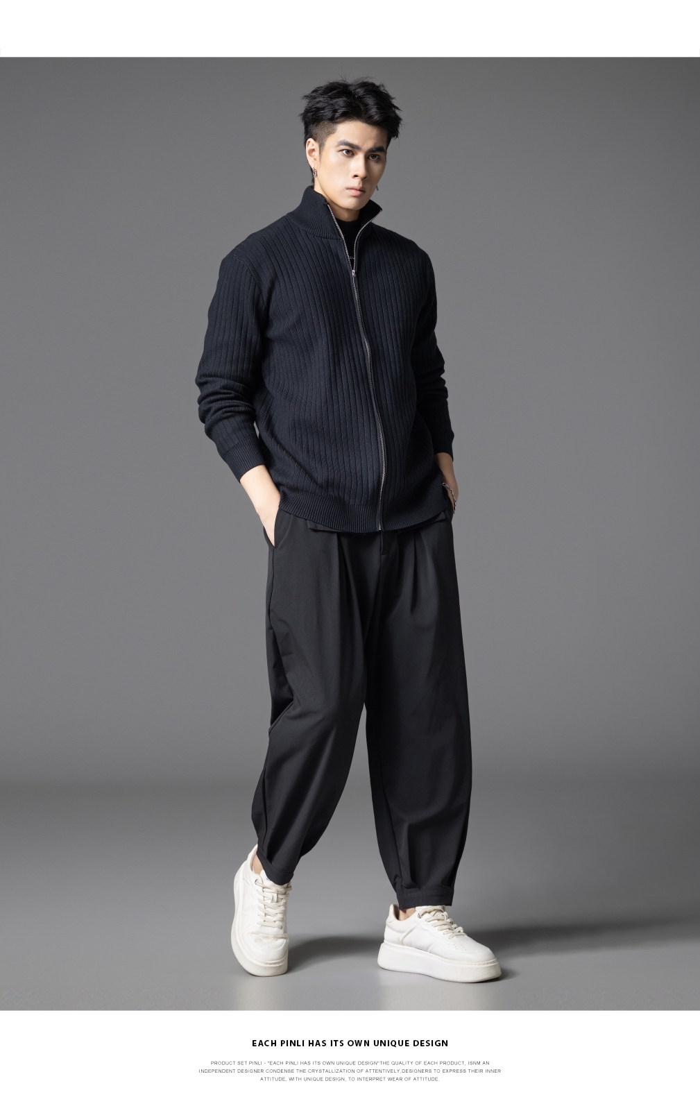 PINLI品立2025秋季新品立领拉链开衫针织衫男士潮牌毛衣外套上衣GD253110082
