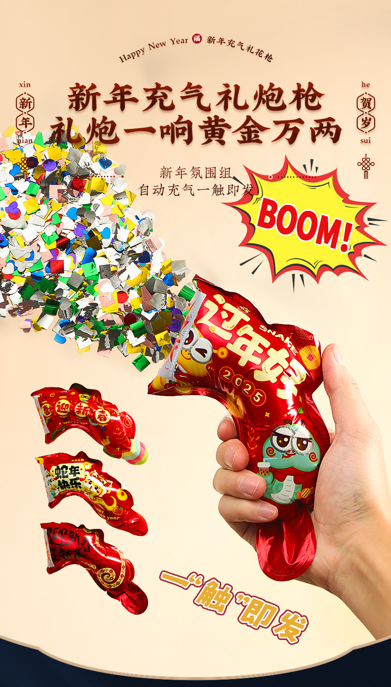 一触即发【礼炮一响黄金万两!新年充气礼炮枪】2025新年小礼炮手持礼花充气手枪过年用品元旦春节氛围感拍照道具,喜庆氛围感拉满~ry